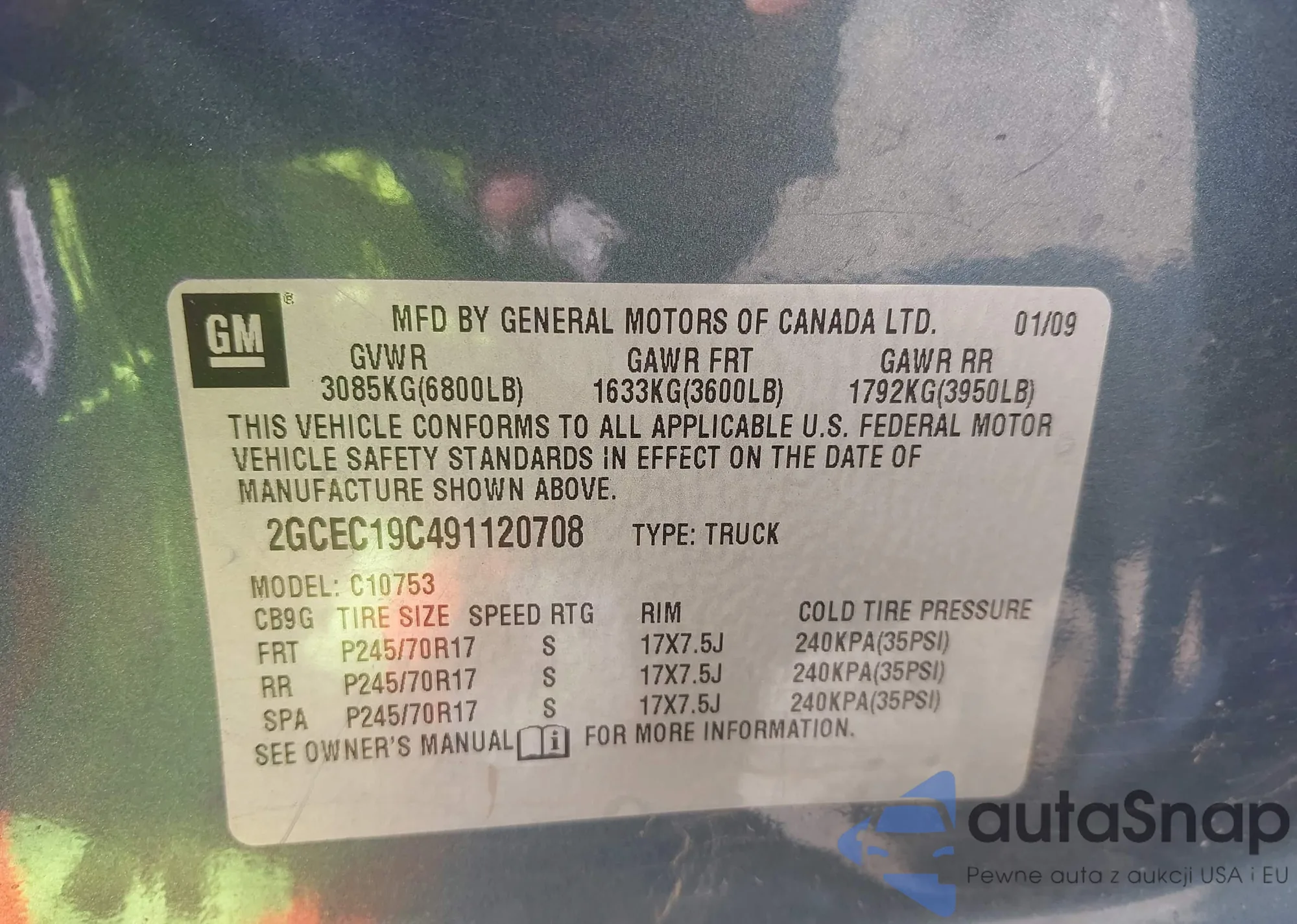 • VIN 2GCEC19C491120708