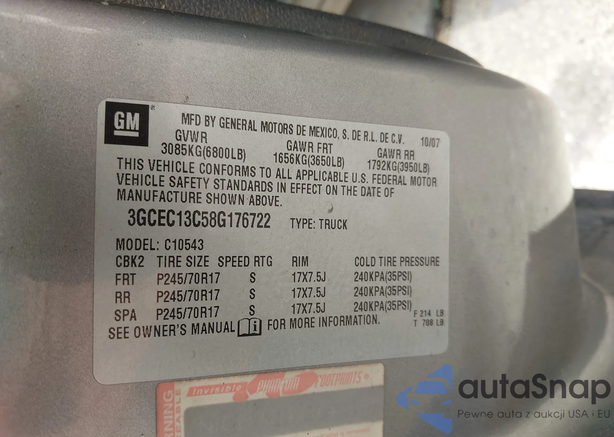 • VIN 3GCEC13C58G176722