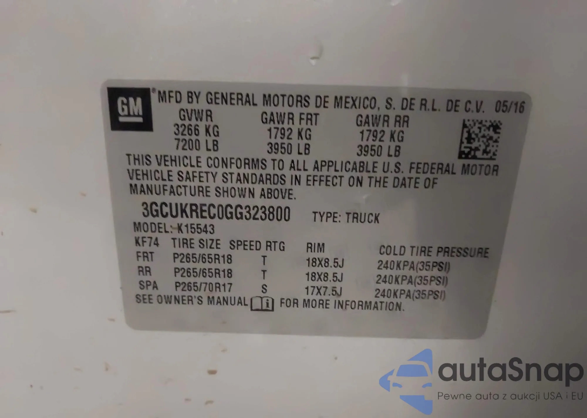 • VIN 3GCUKREC0GG323800