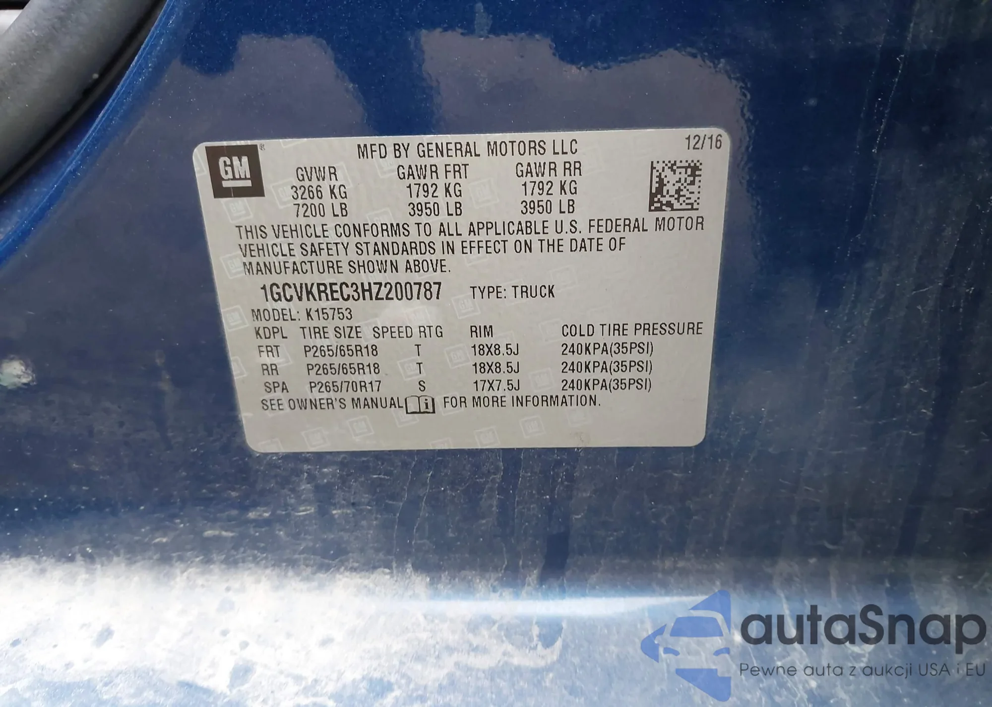 • VIN 1GCVKREC3HZ200787