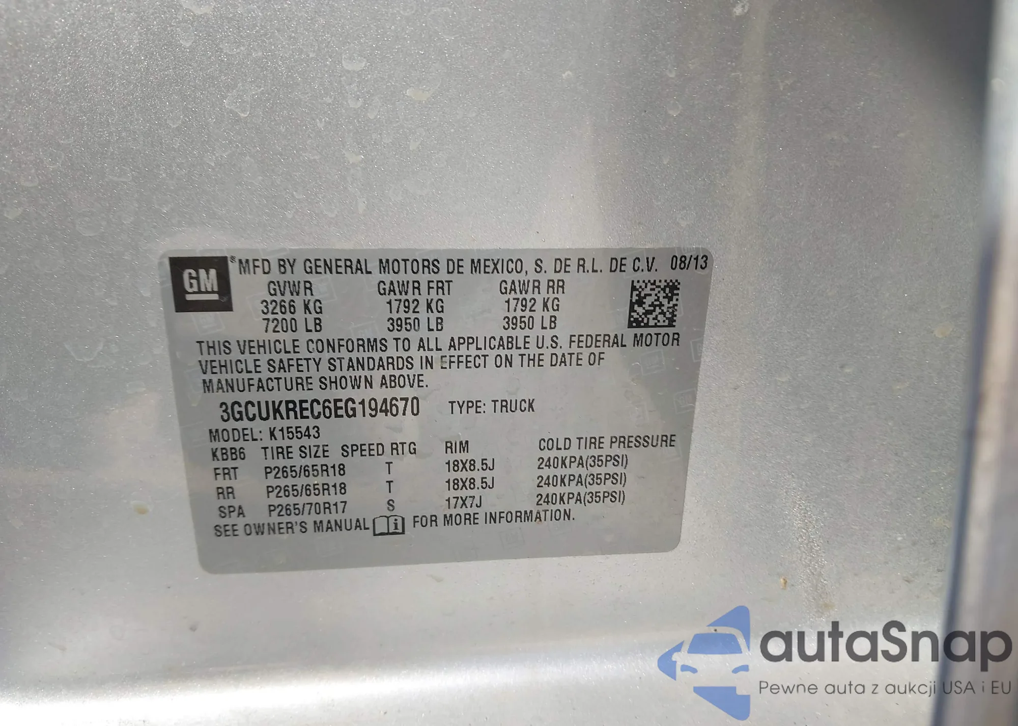 • VIN 3GCUKREC6EG194670