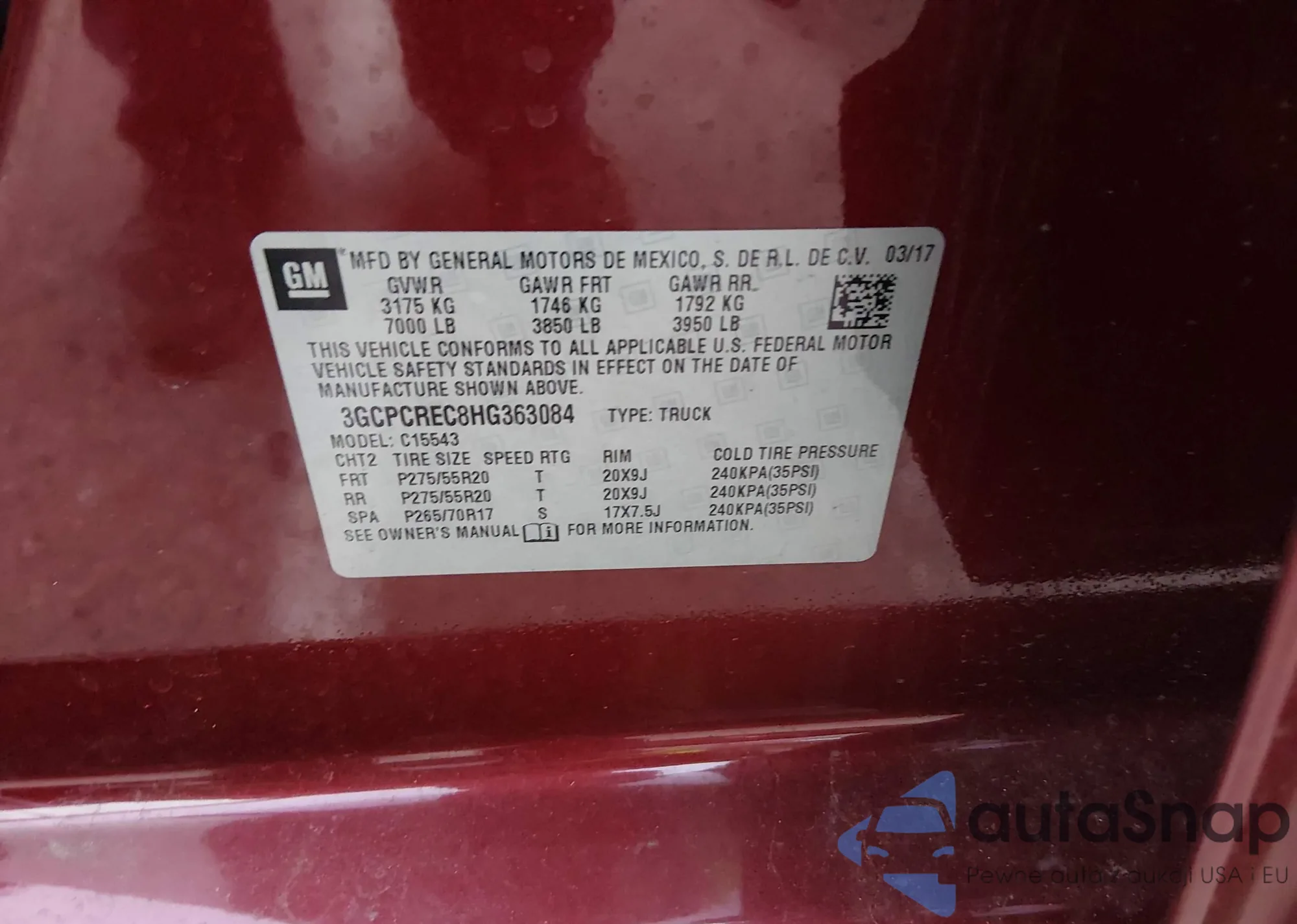 • VIN 3GCPCREC8HG363084