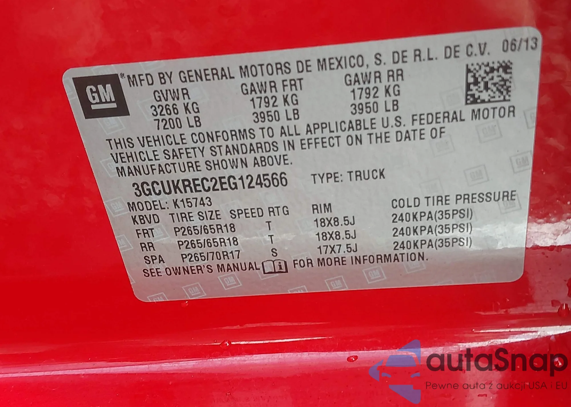 • VIN 3GCPCREC4JG490503