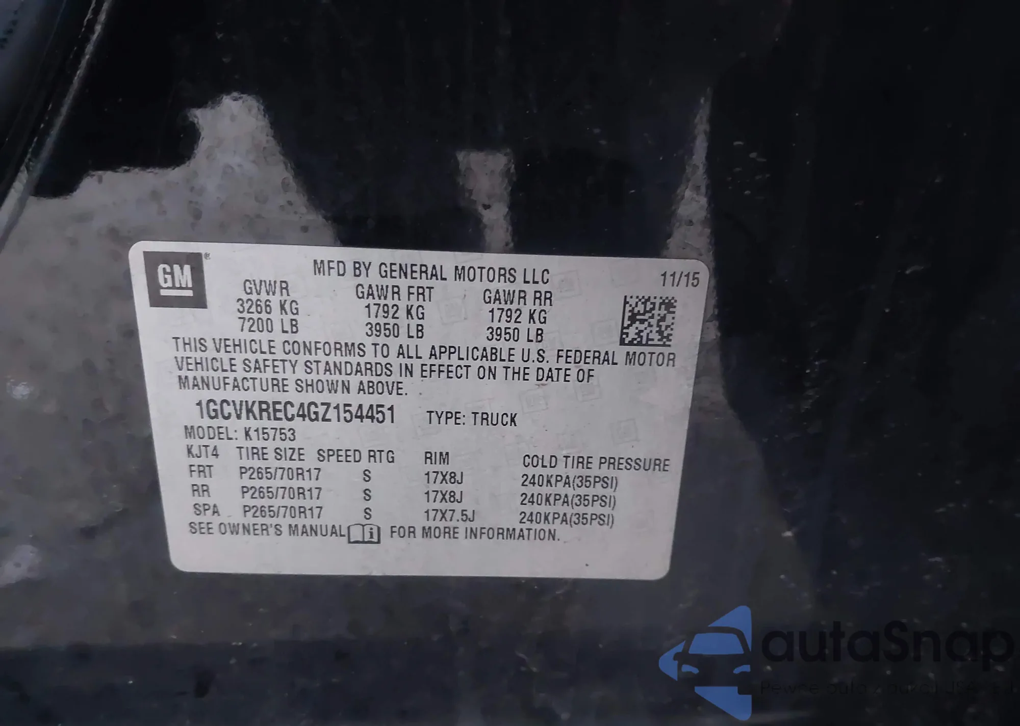• VIN 1GCVKREC4GZ154451