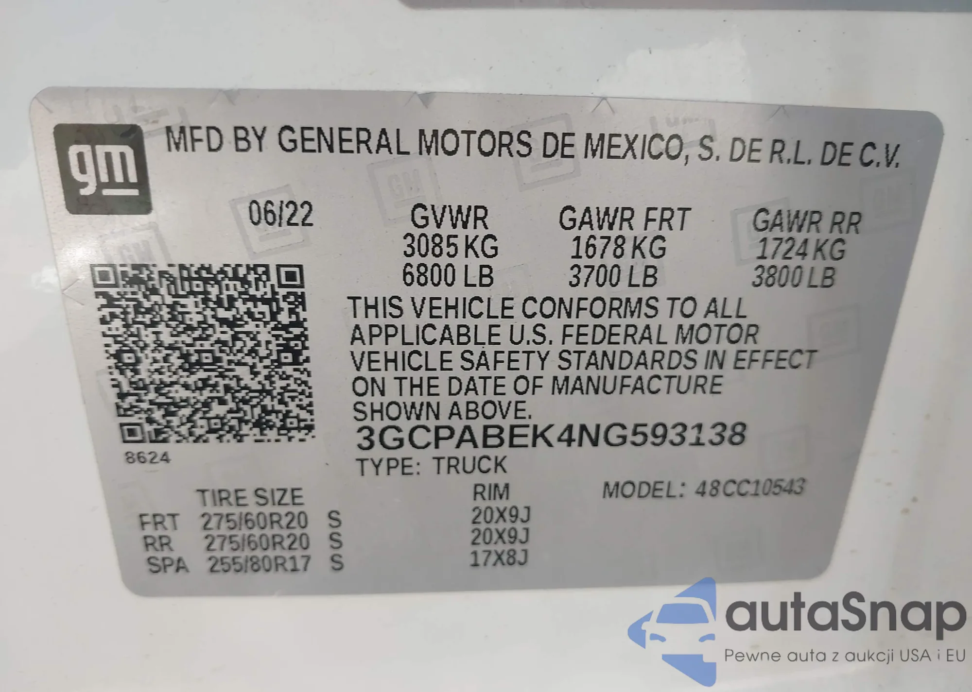 • VIN 3GCPABEK4NG593138