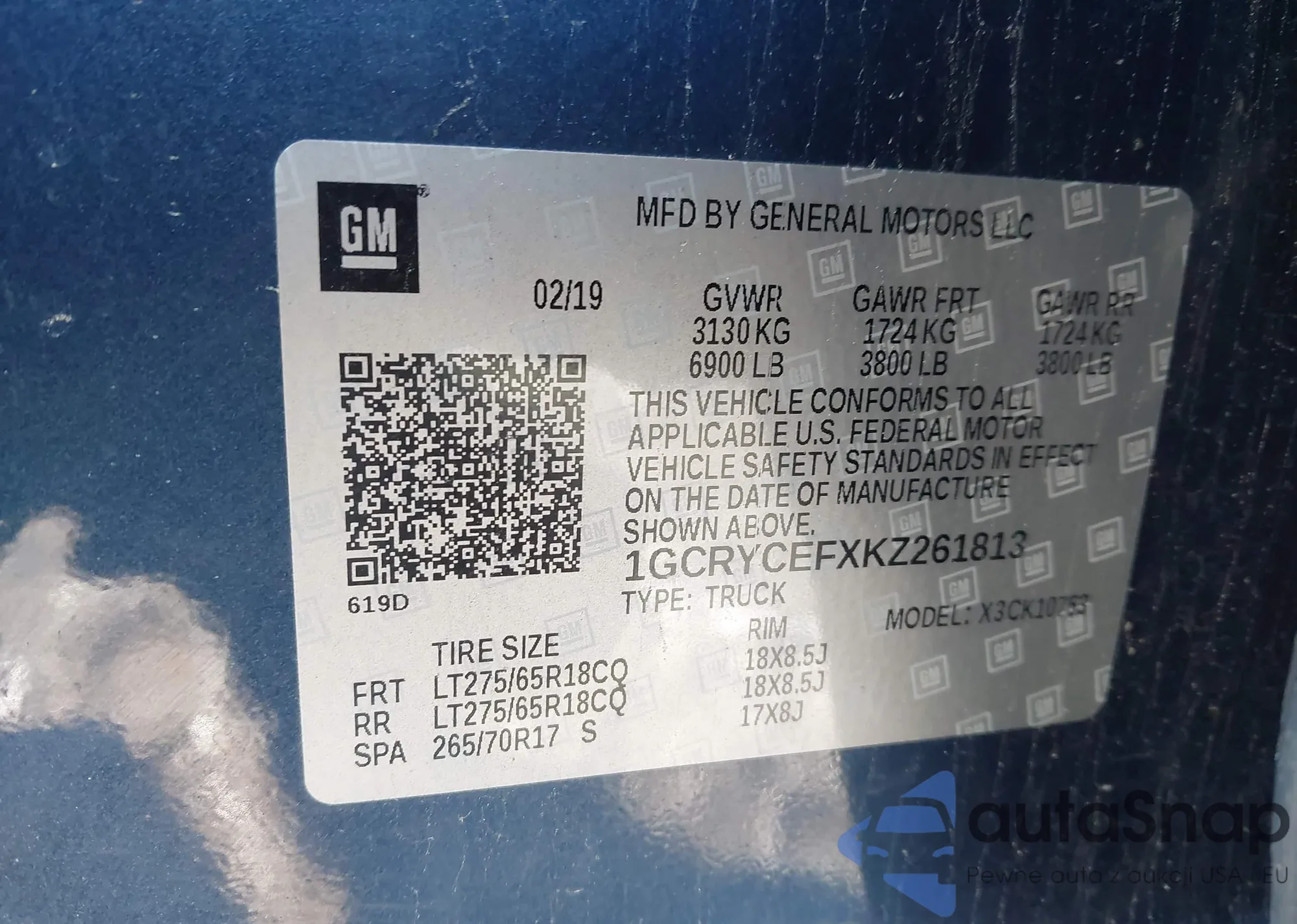 LOT: 44177132 VIN: 1GCRYCEFXKZ261813