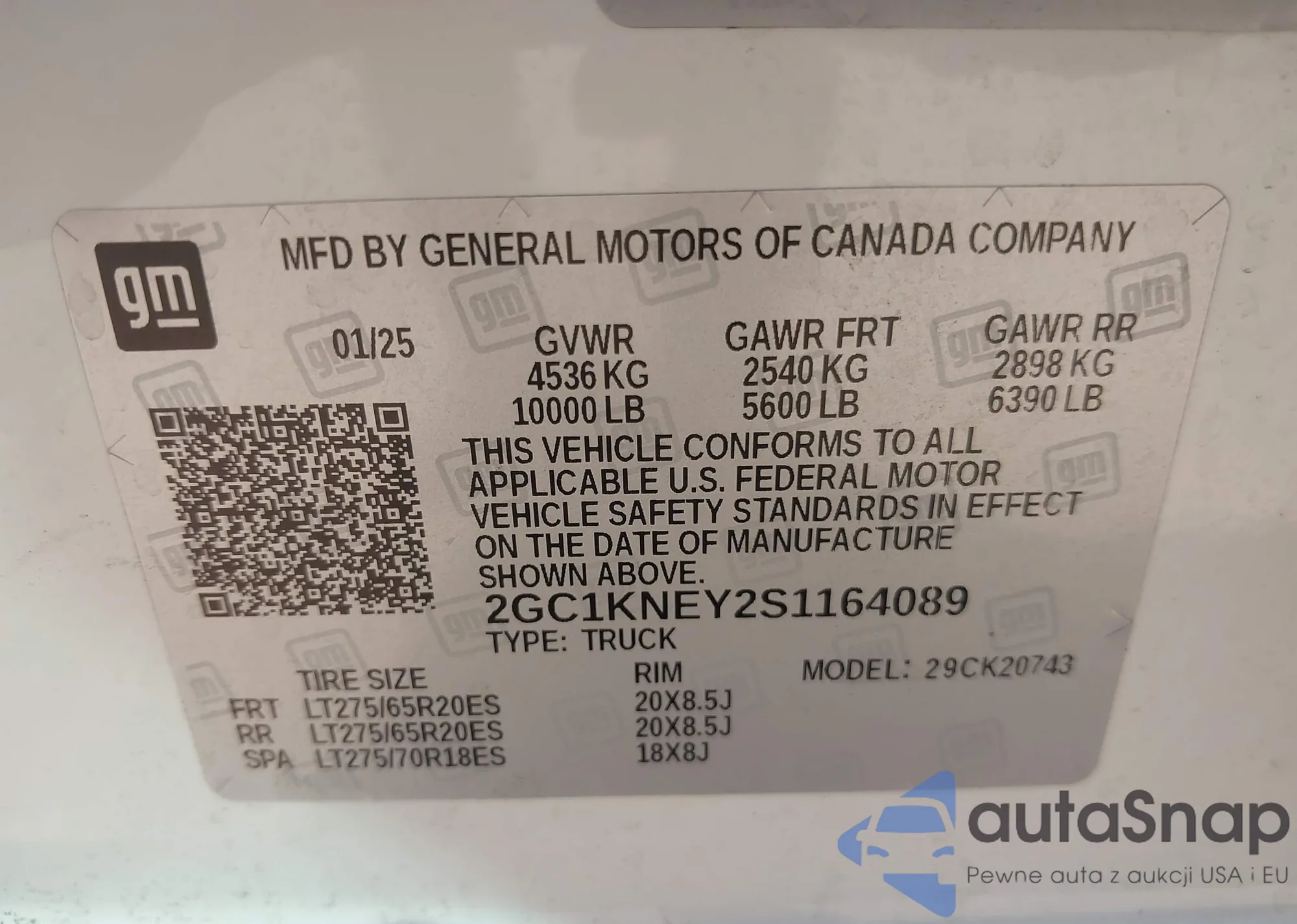 LOT: 43685290 VIN: 2GC1KNEY2S1164089