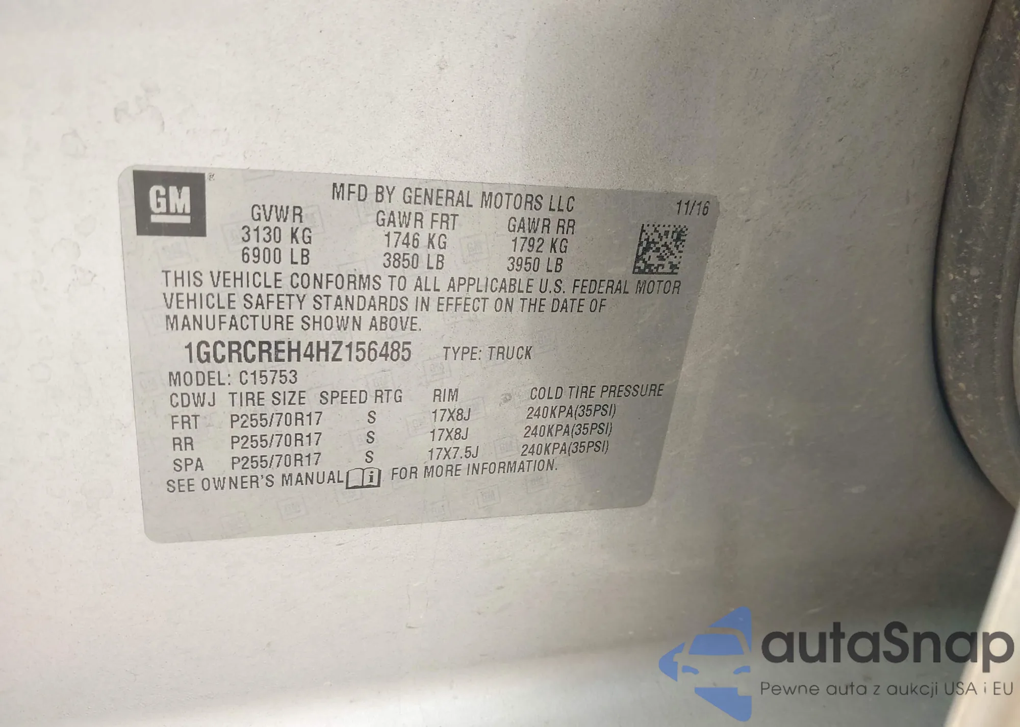 • VIN 1GCRCREH4HZ156485