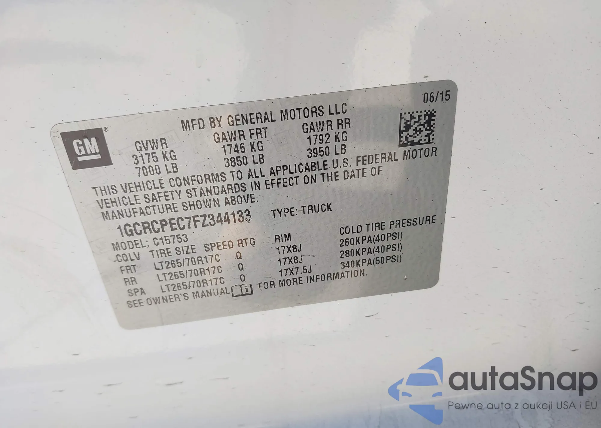 • VIN 1GCRCPEC7FZ344133