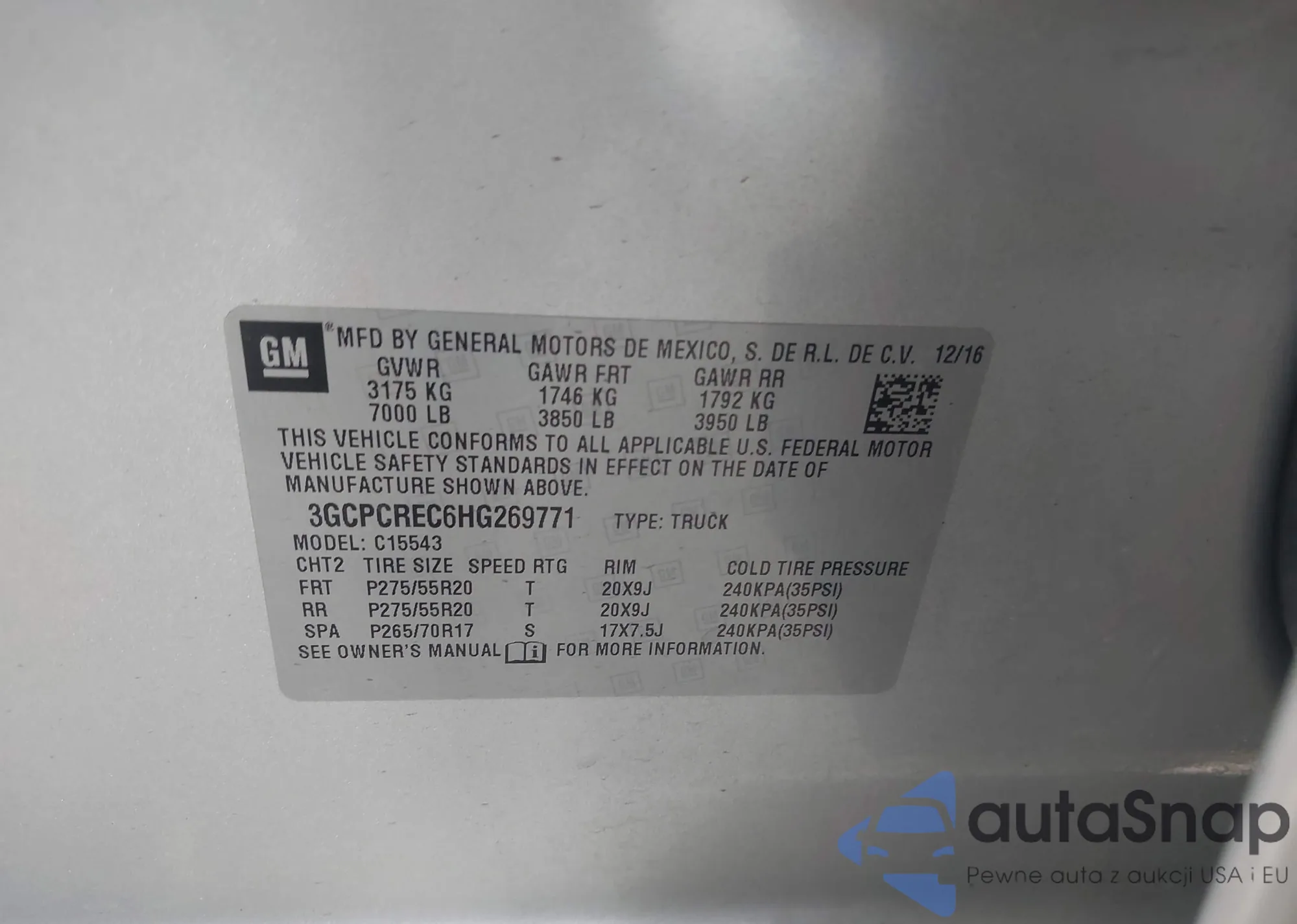 • VIN 3GCPCREC6HG269771