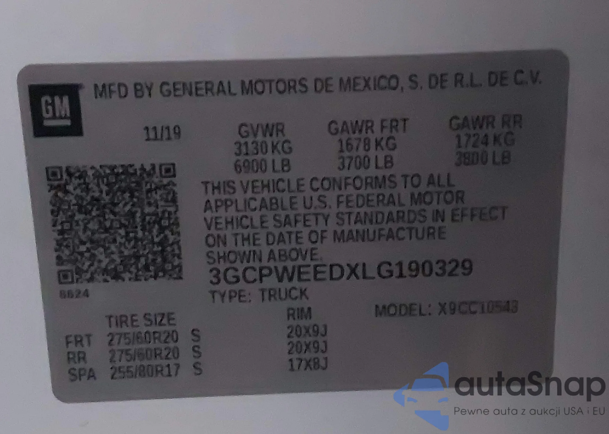 • VIN 3GCPWEEDXLG190329