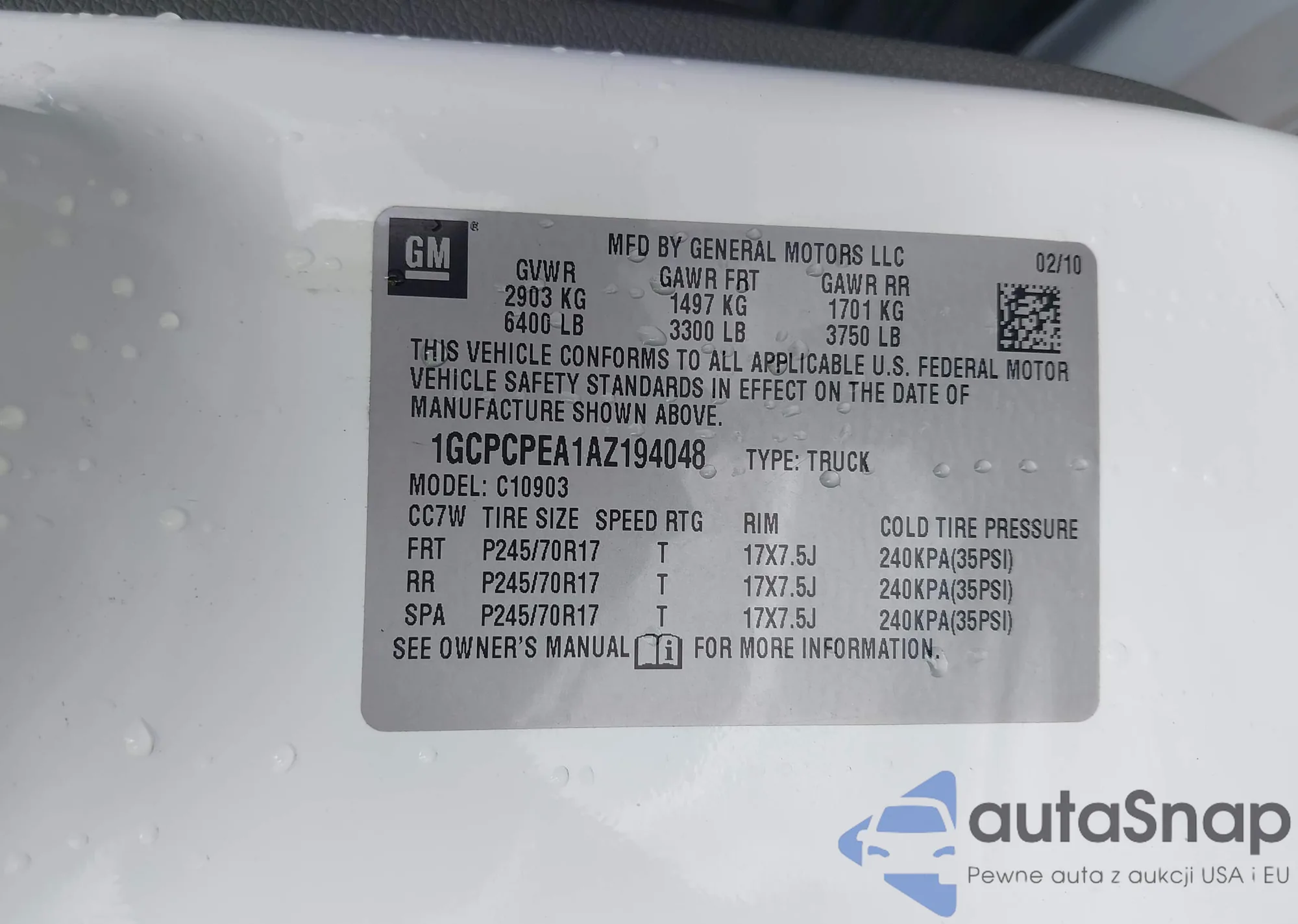 LOT: 43729986 VIN: 01GCPCPEA1AZ19404