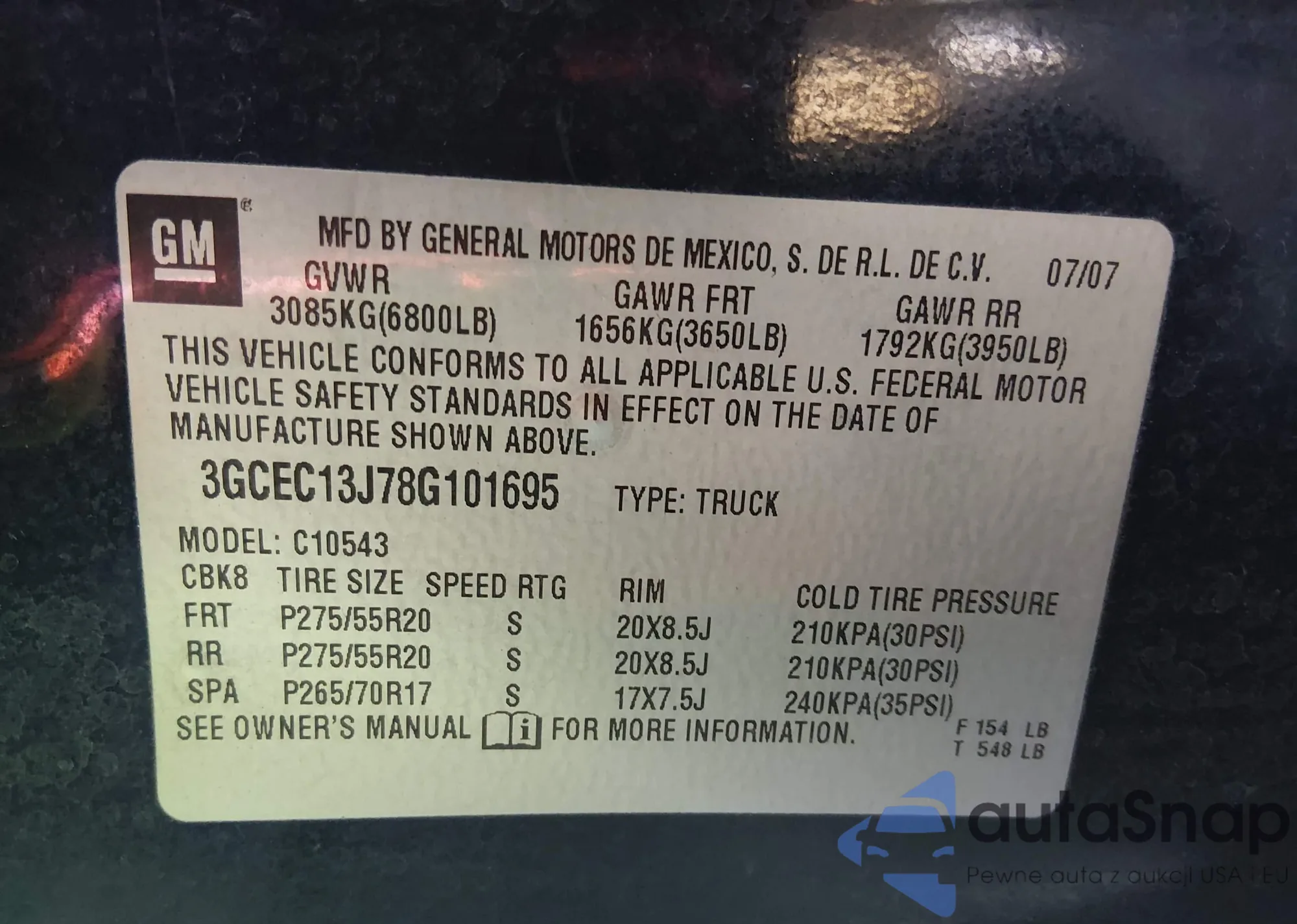 • VIN 3GCEC13J78G101695
