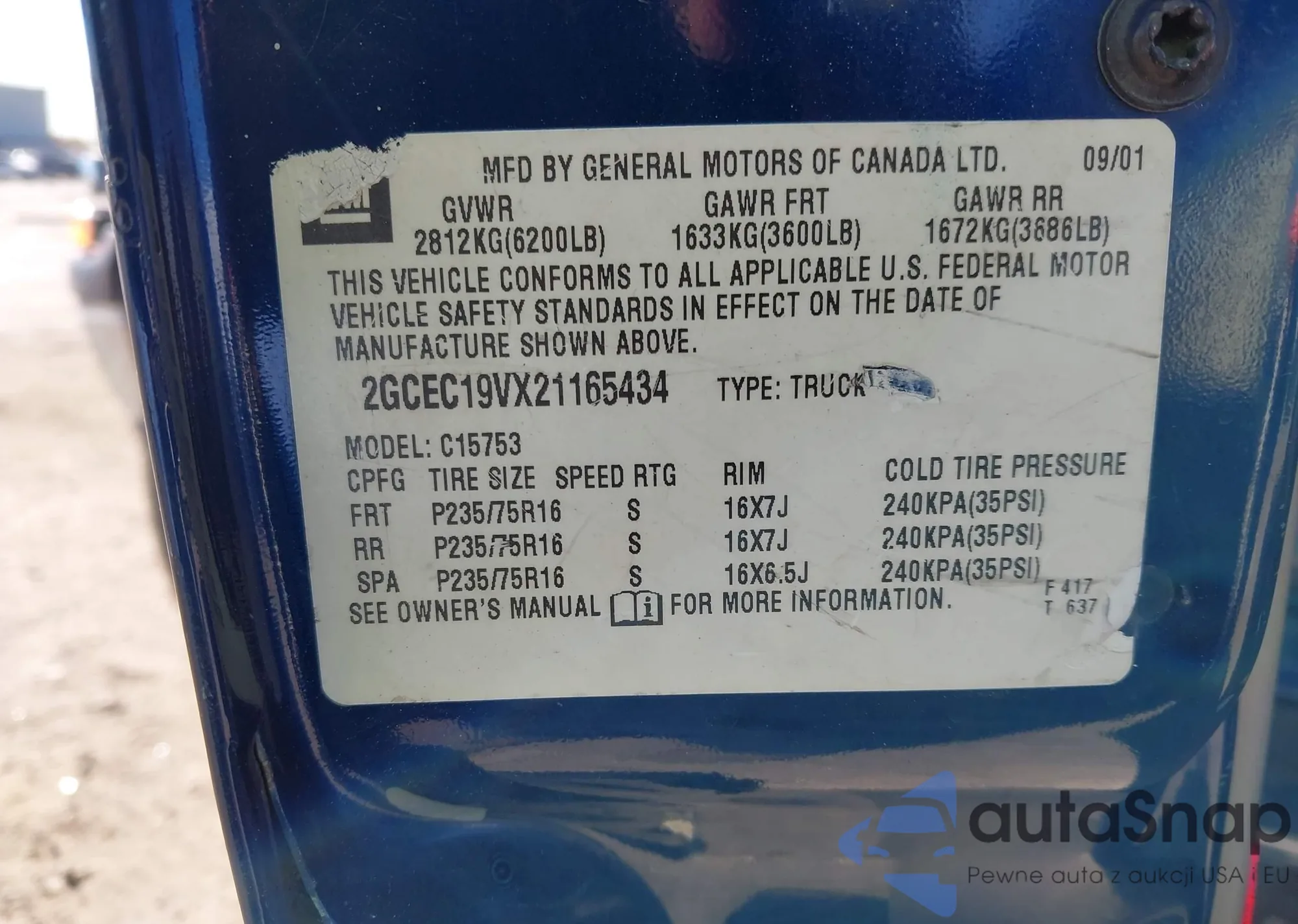 • VIN 2GCEC19VX21165434