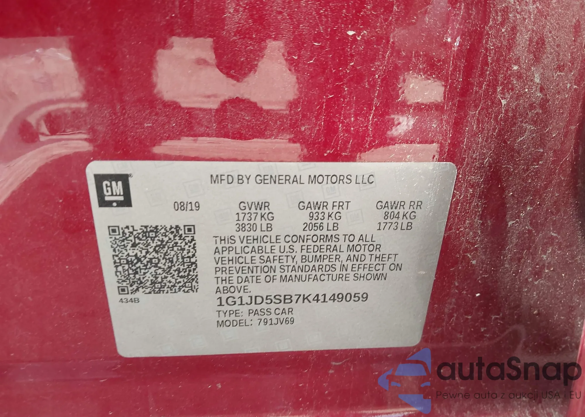 • VIN 1G1JD5SB7K4149059