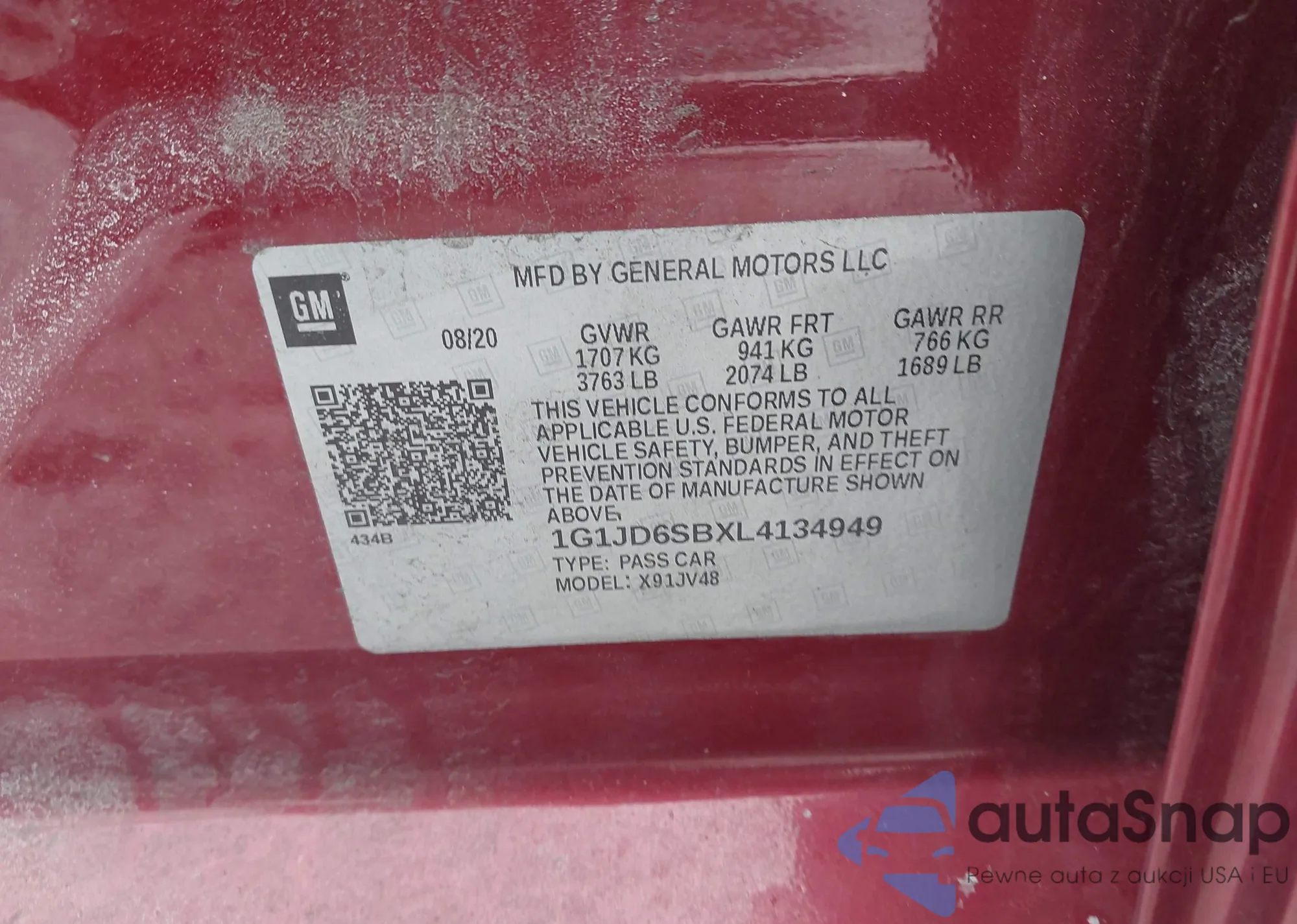 • VIN 1G1JD6SBXL4134949