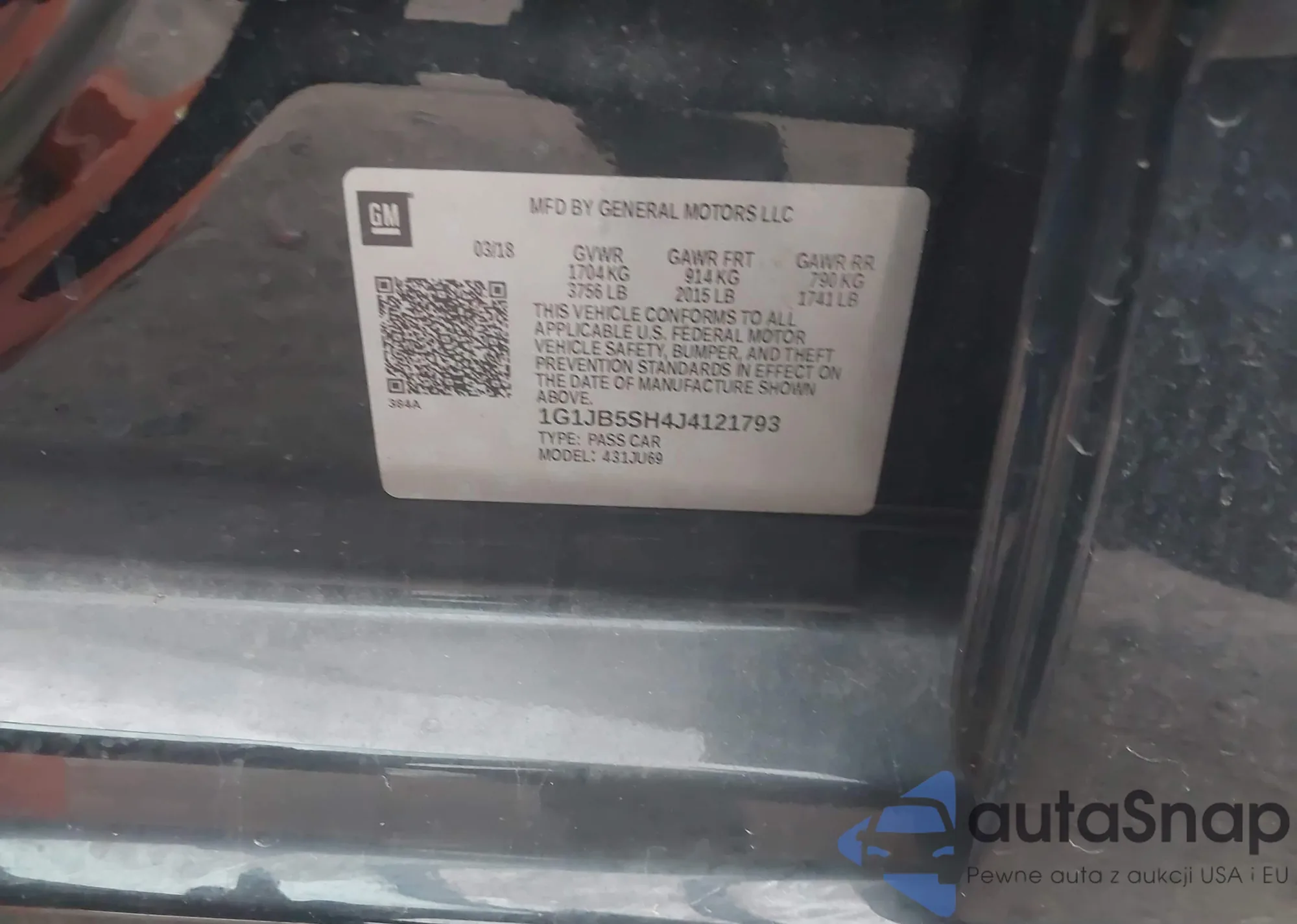 LOT: 43938178 VIN: 1G1JB5SH4J4121793