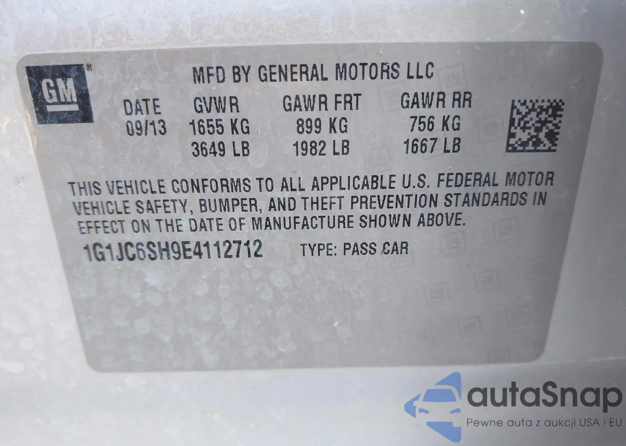 LOT: 43900174 VIN: 1G1JA6SH9G4112265