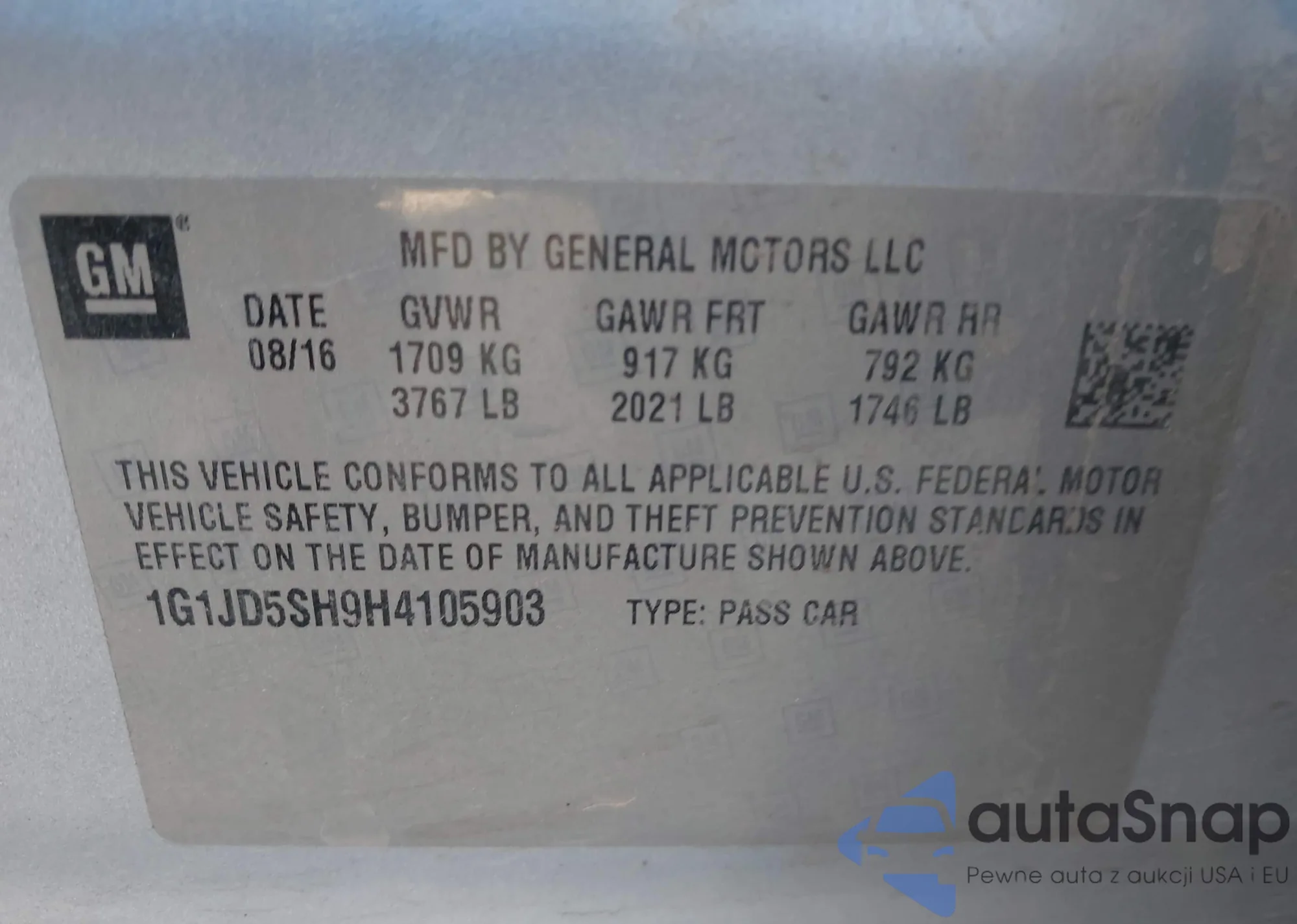 LOT: 43869068 VIN: 1G1JD5SH9H4105903