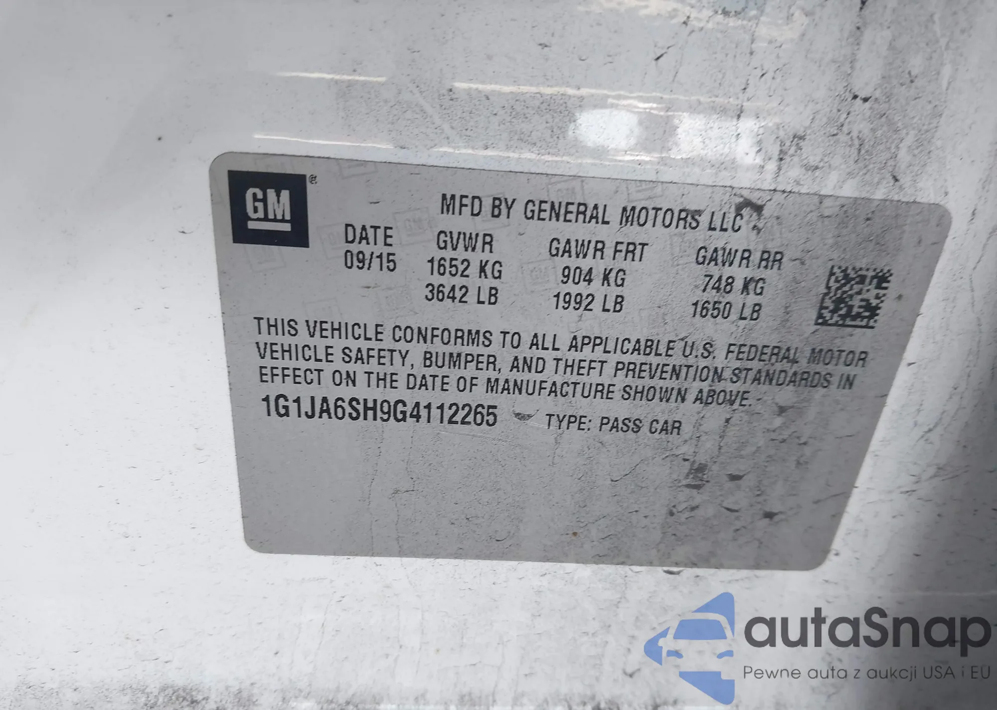 • VIN 1G1JA6SH9G4112265