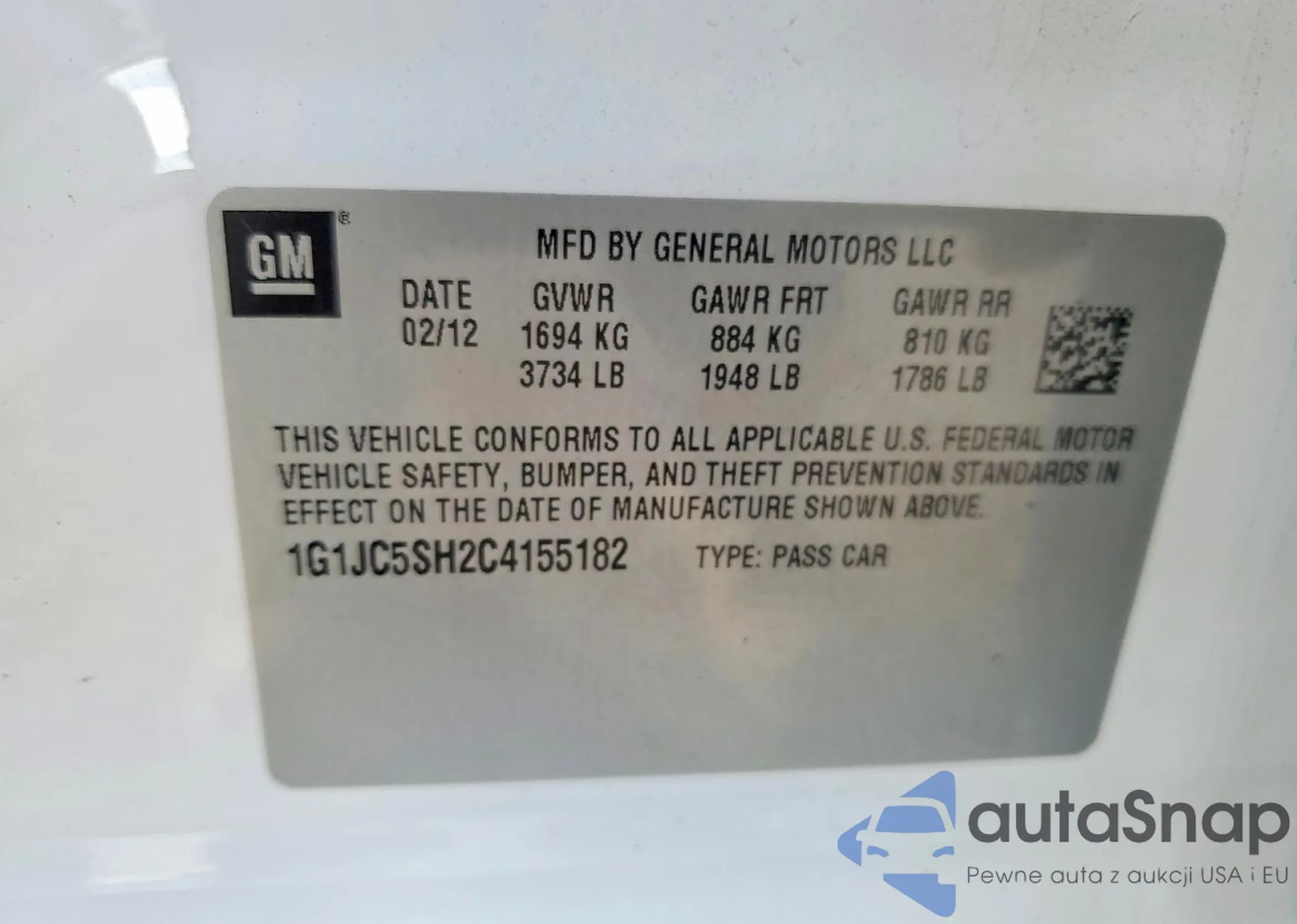 • VIN 1G1JC5SH2C4155182