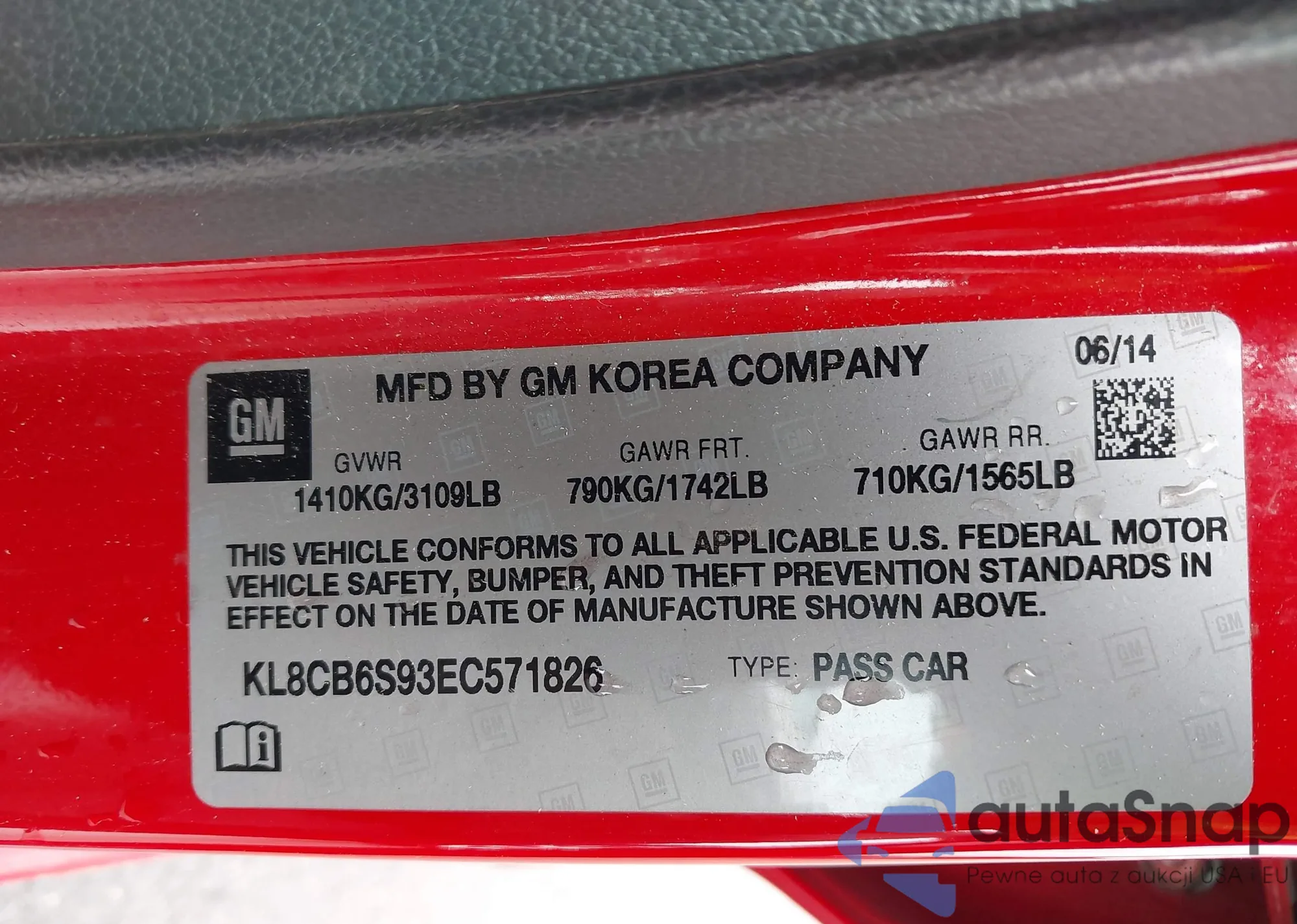 • VIN KL8CB6S93EC571826
