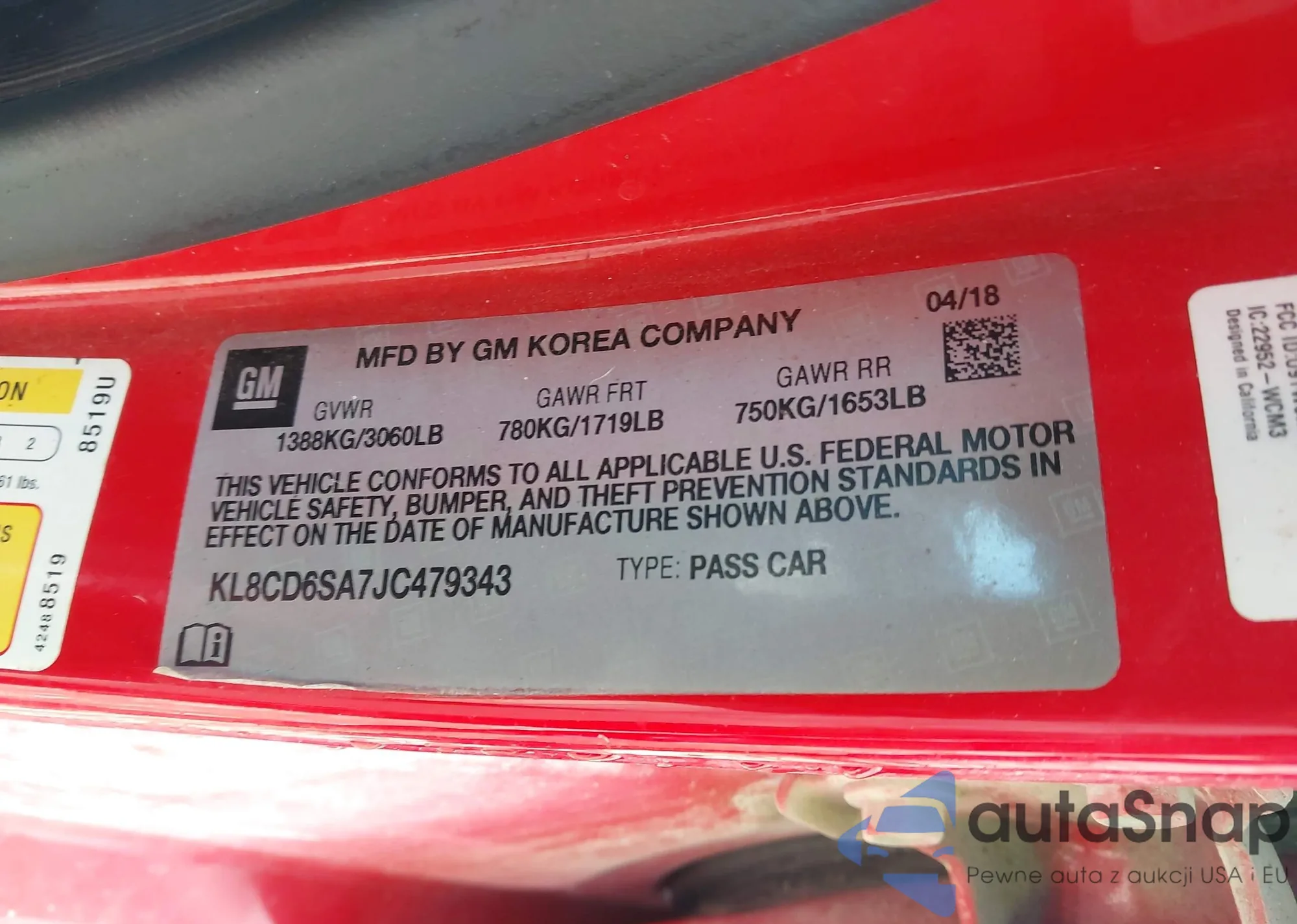• VIN KL8CD6SA7JC479343