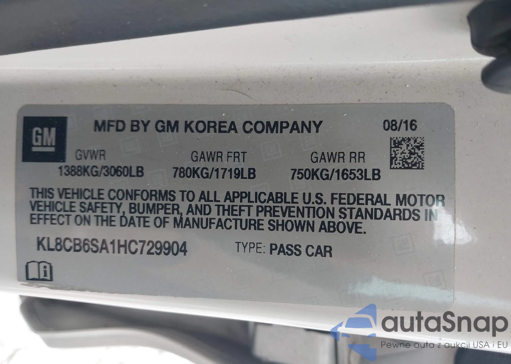 • VIN KL8CB6SA1HC729904