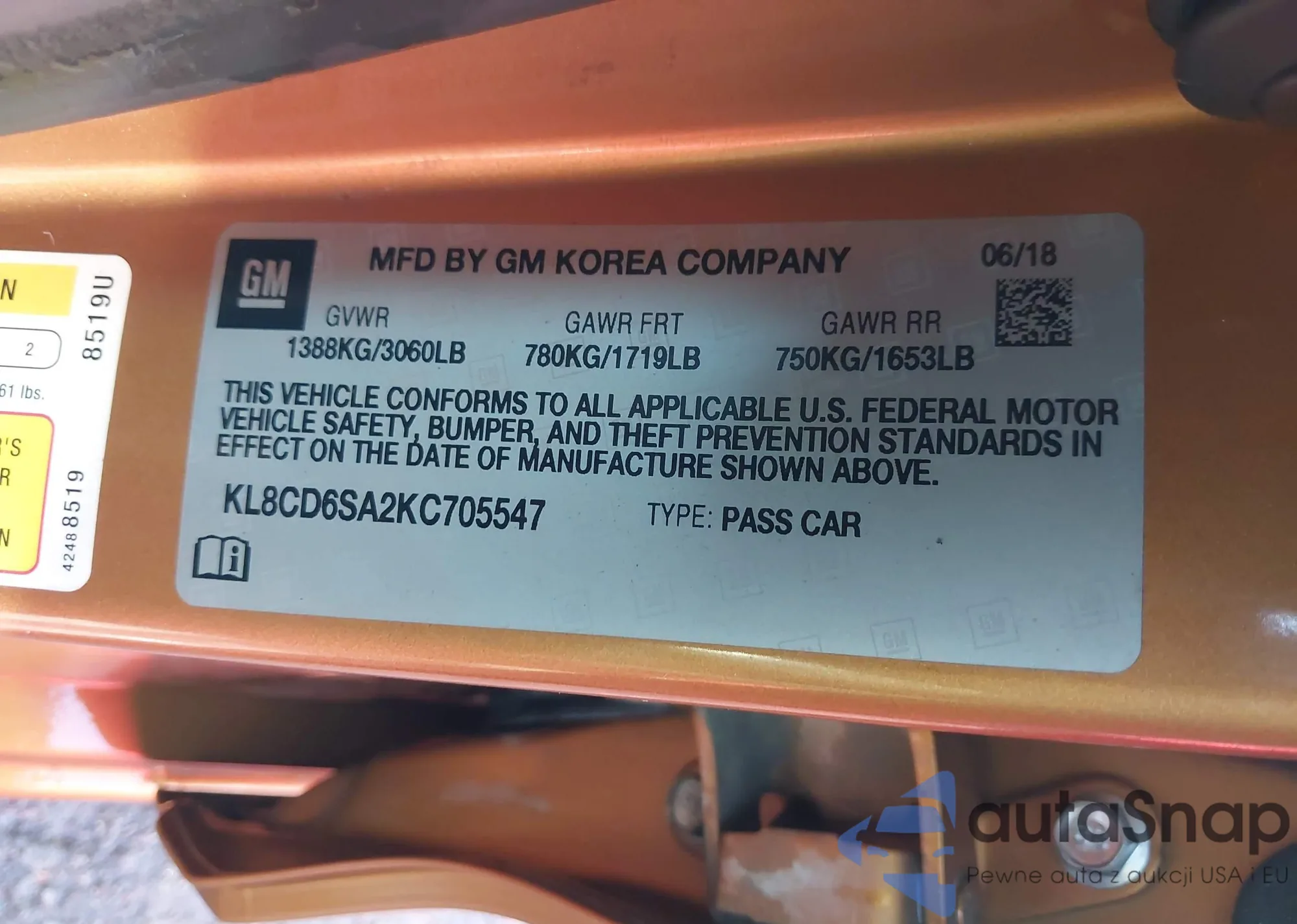 • VIN KL8CD6SA2KC705547