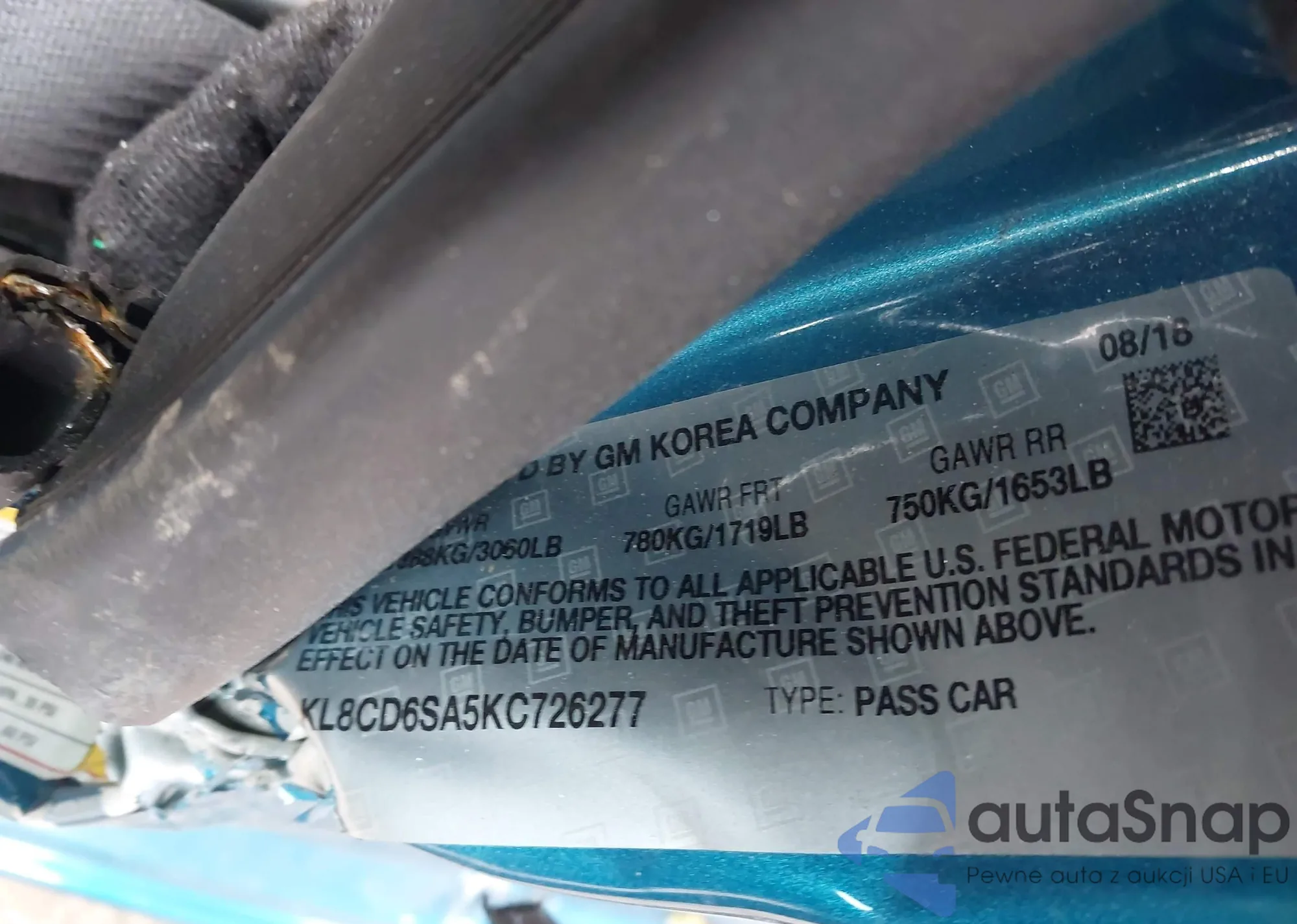 • VIN KL8CD6SA5KC726277