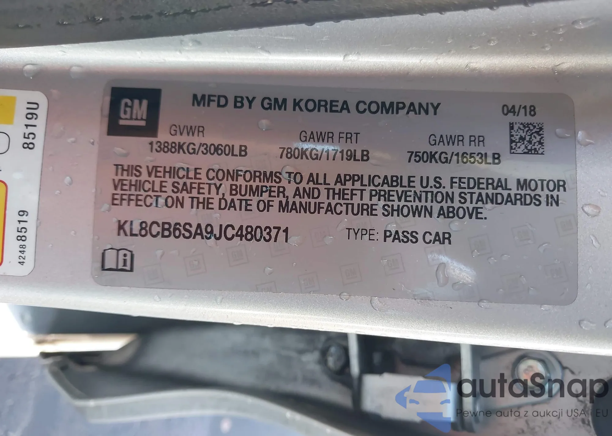 • VIN KL8CB6SA9JC480371