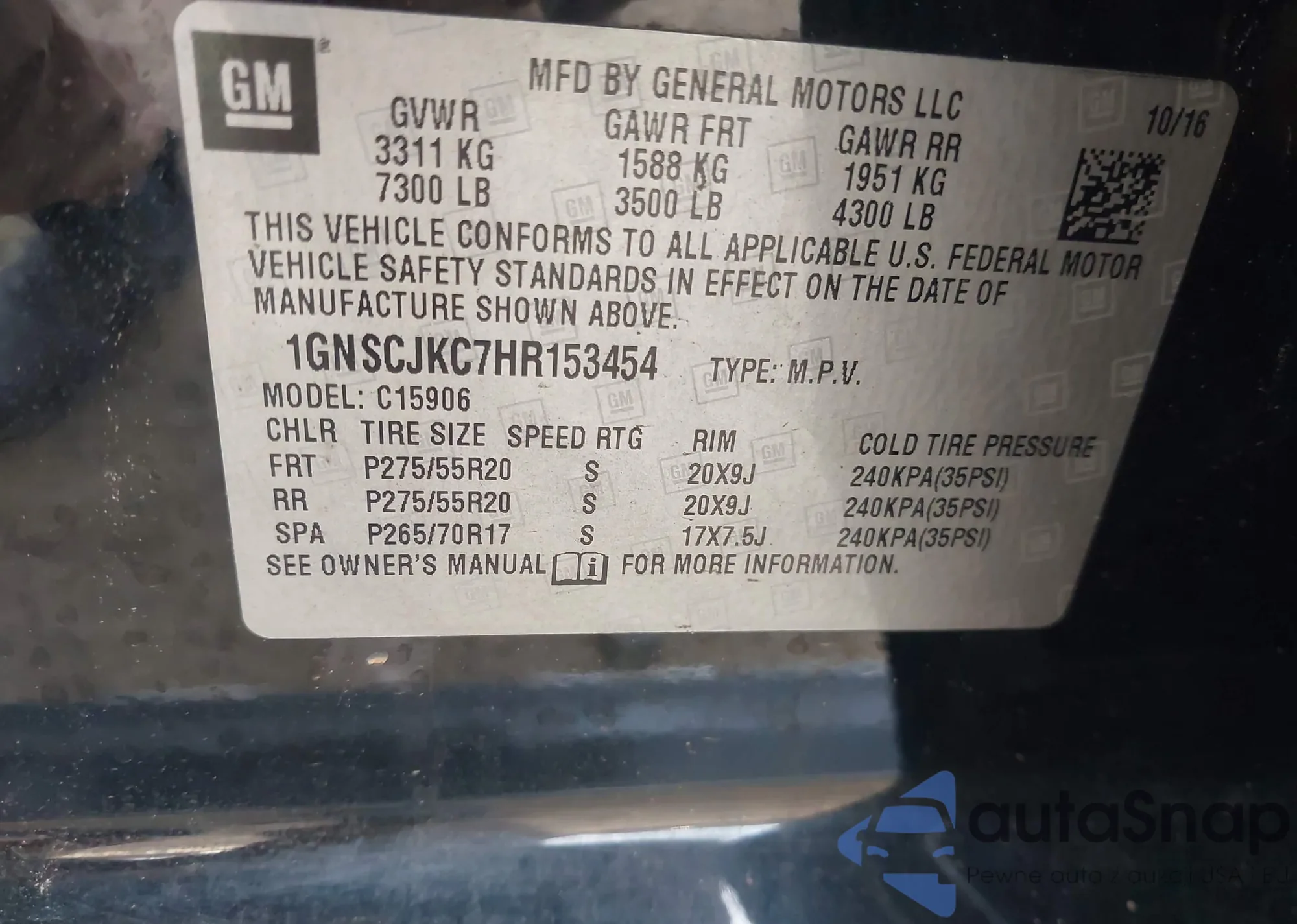 • VIN 1GNSCJKC7HR153454