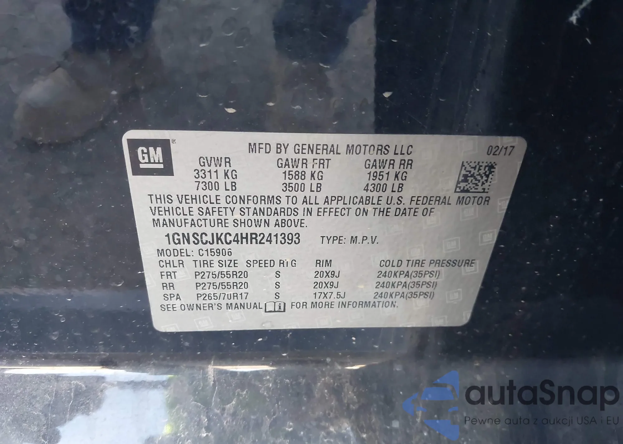 • VIN 1GNSCJKC4HR241393
