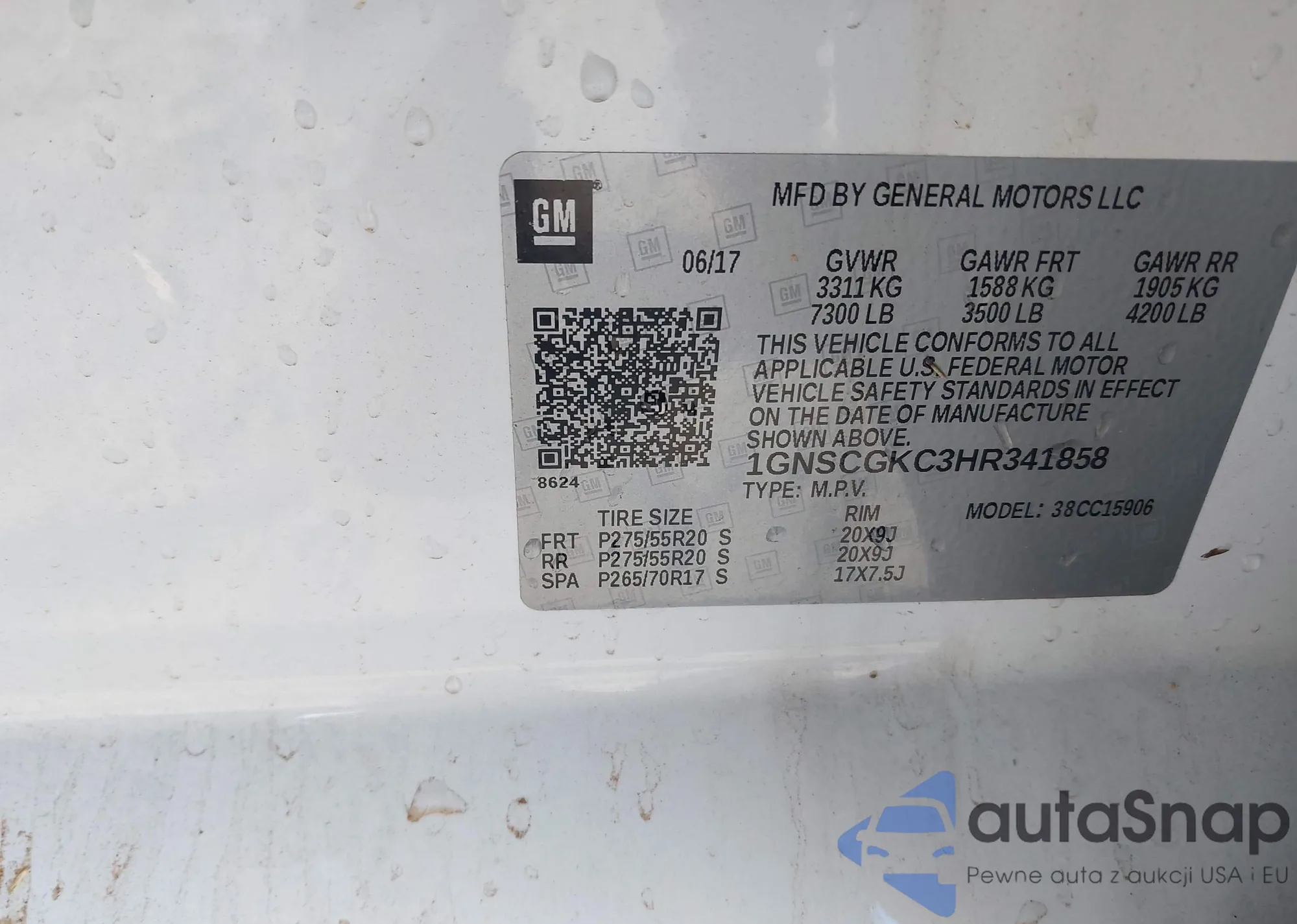 LOT: 44178348 VIN: 1GNSCGKC3HR341858