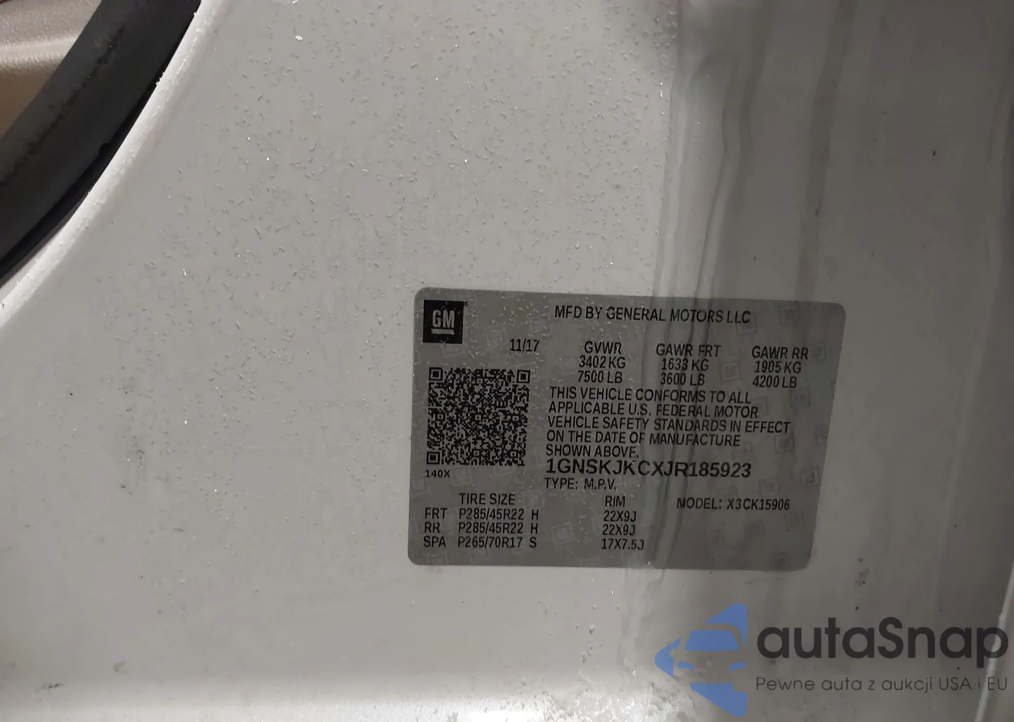 LOT: 44260927 VIN: 1GNSKJKCXJR185923