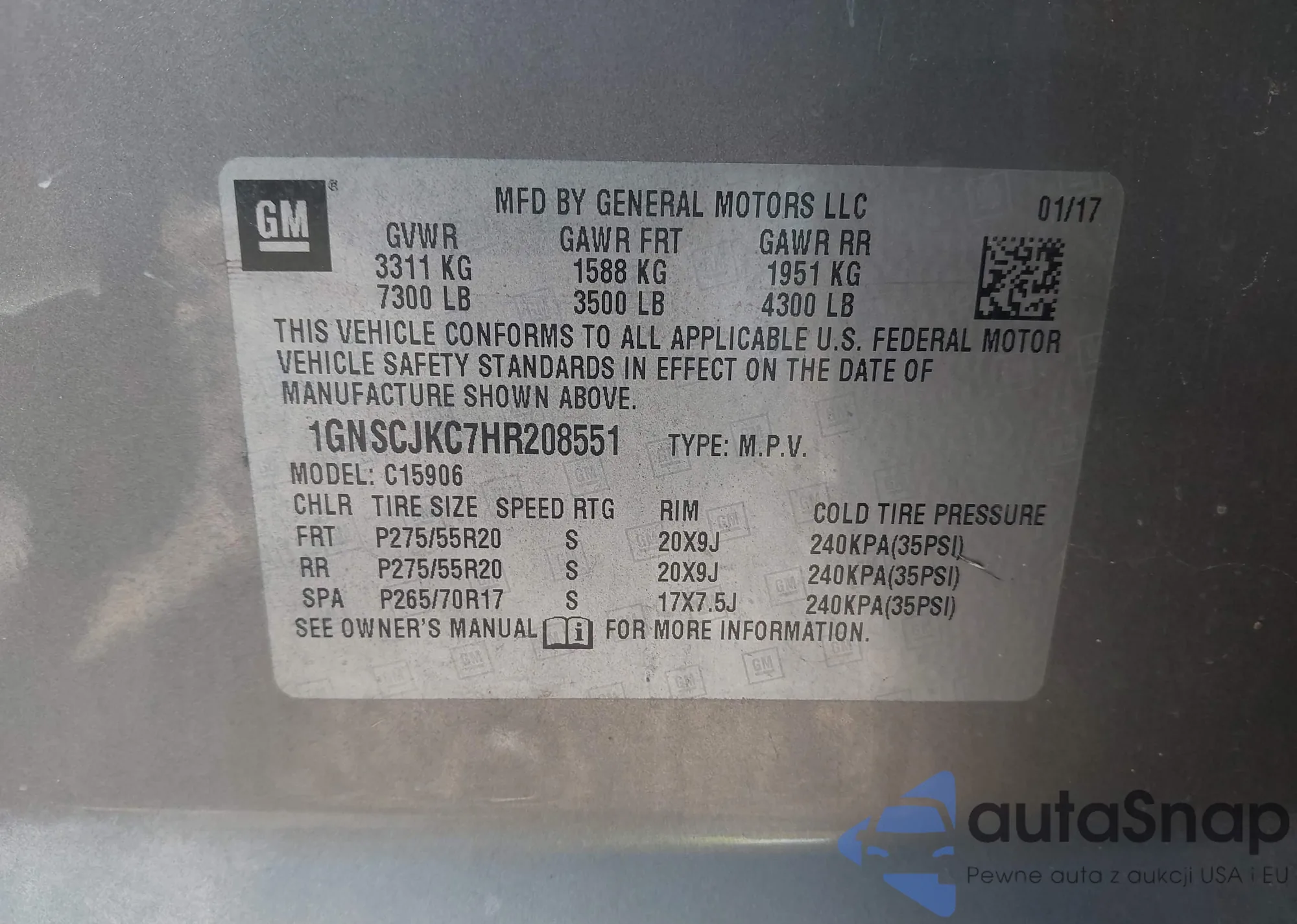 • VIN 1GNSCJKC7HR208551