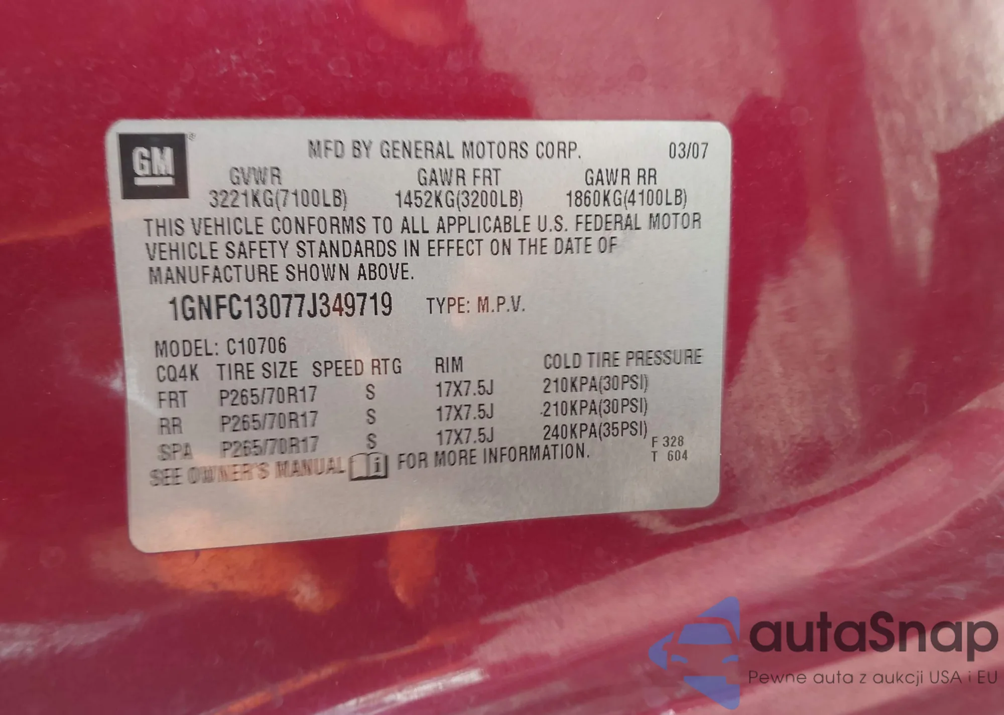 LOT: 44038129 VIN: 1GNFK13077R427307