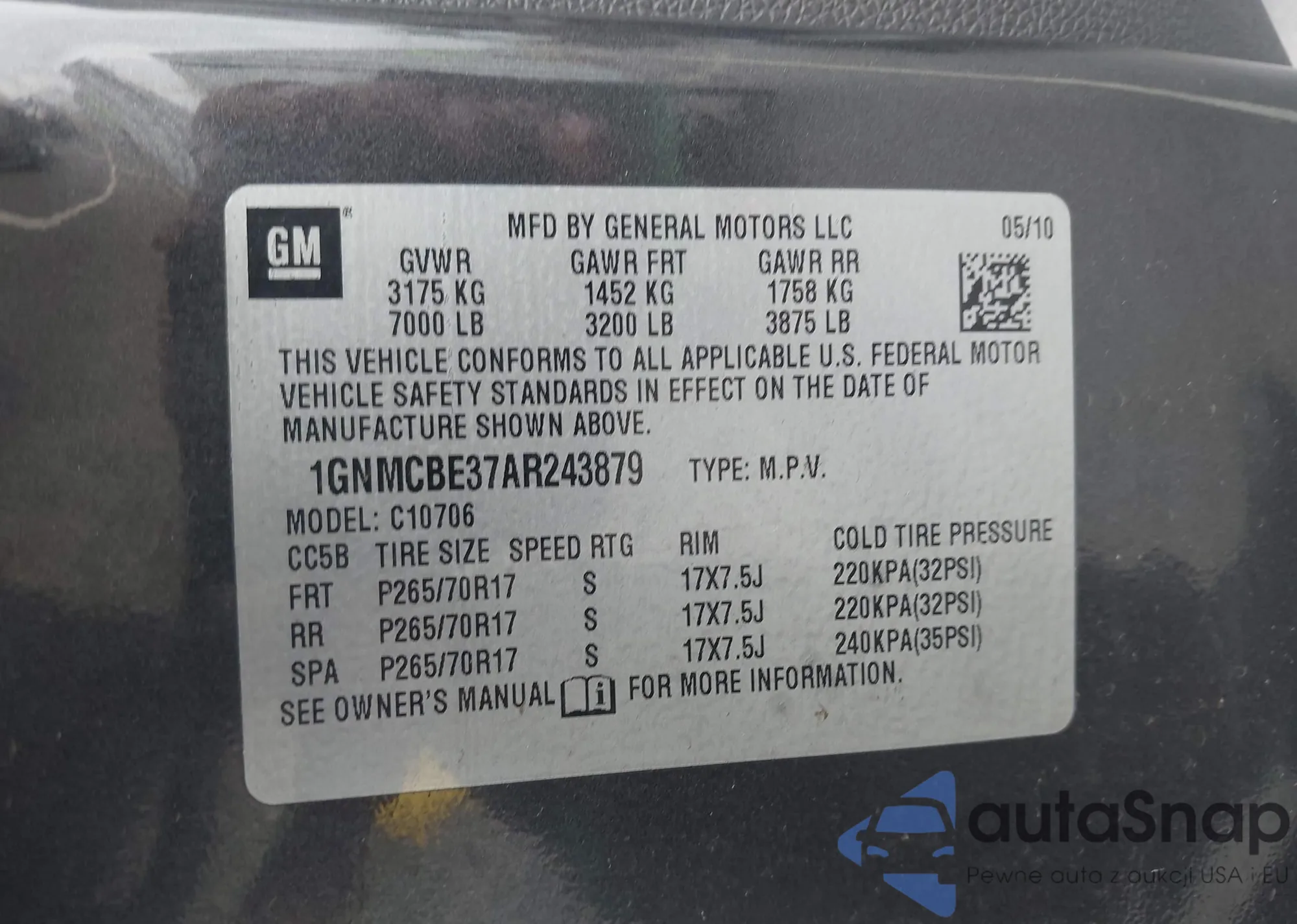 • VIN 1GNMCBE37AR243879