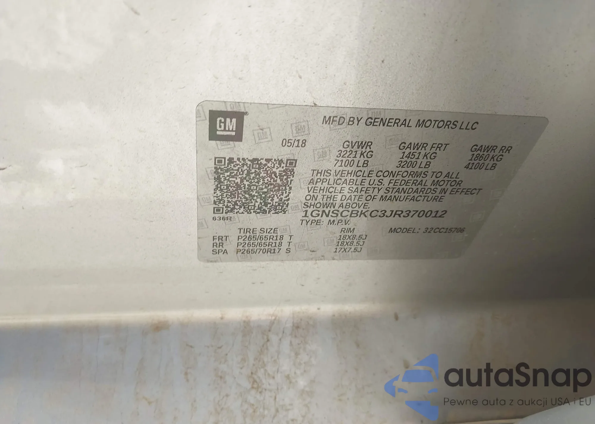 LOT: 43731514 VIN: 1GNSCBKC3JR370012