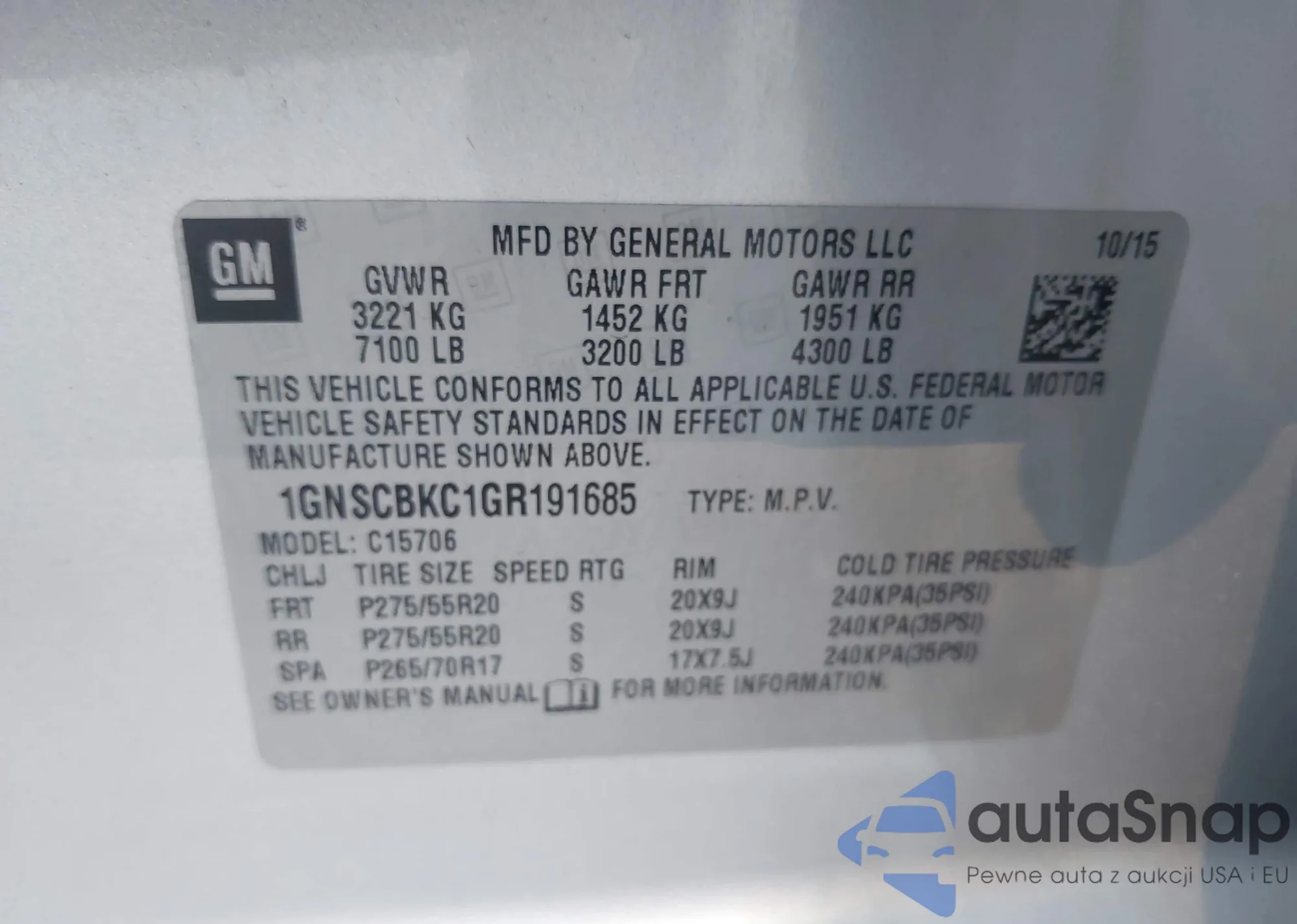 LOT: 43899669 VIN: 1GNSKBKC6FR127966