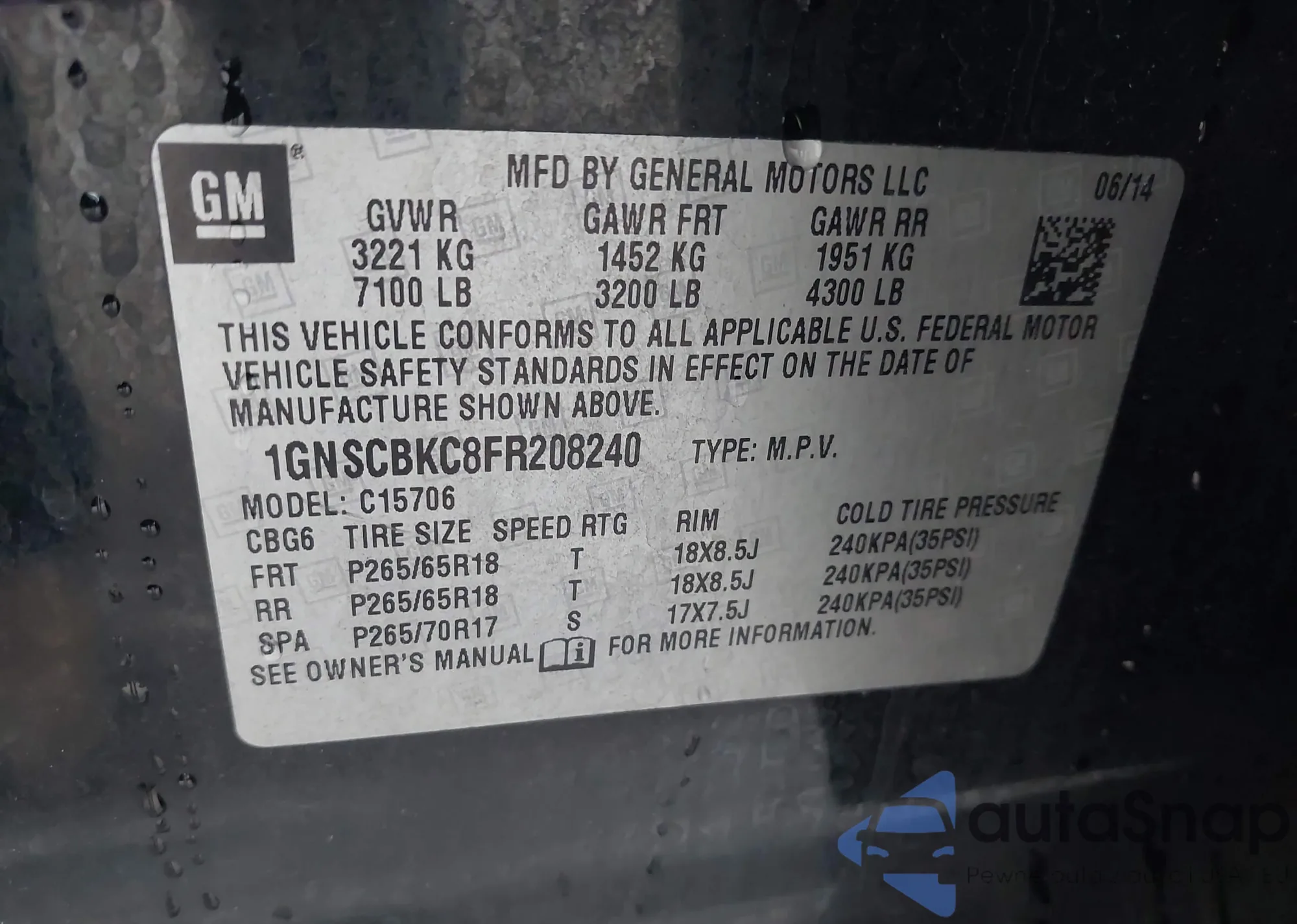 LOT: 44139753 VIN: 1GNSKBKC8FR568255
