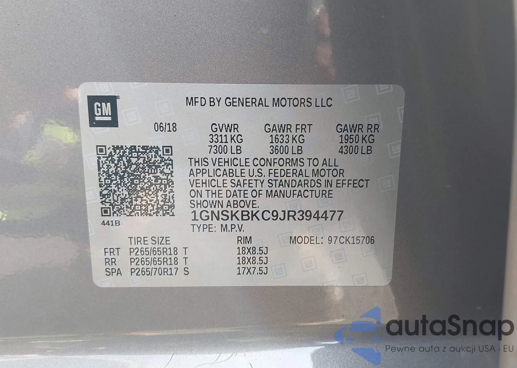 • VIN 1GNSKBKC9JR394477