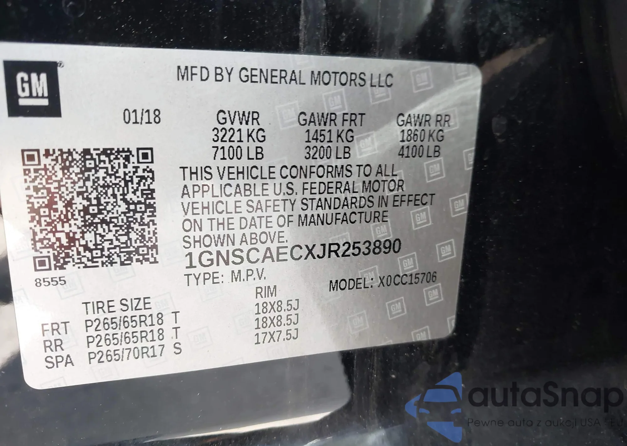 LOT: 44206703 VIN: 1GNSCAECXJR253890