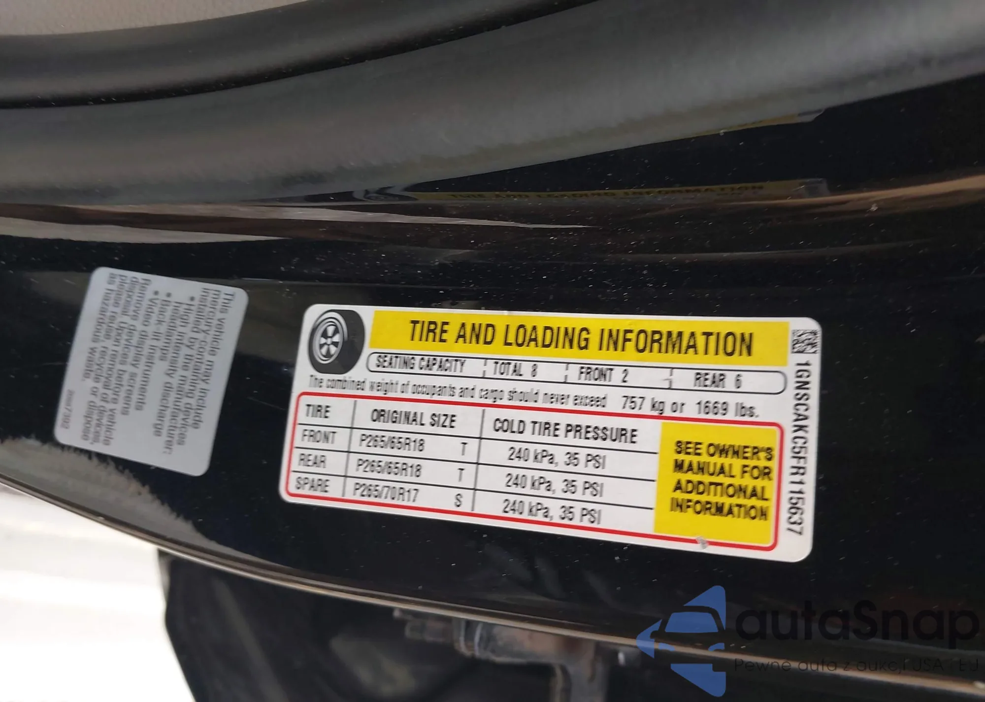 • VIN 1GNSCAKC5FR115637
