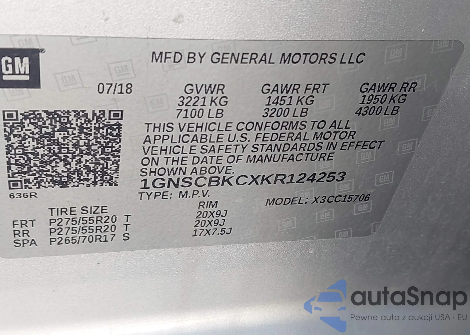 LOT: 44347352 VIN: 1GNSKBKC8KR303393