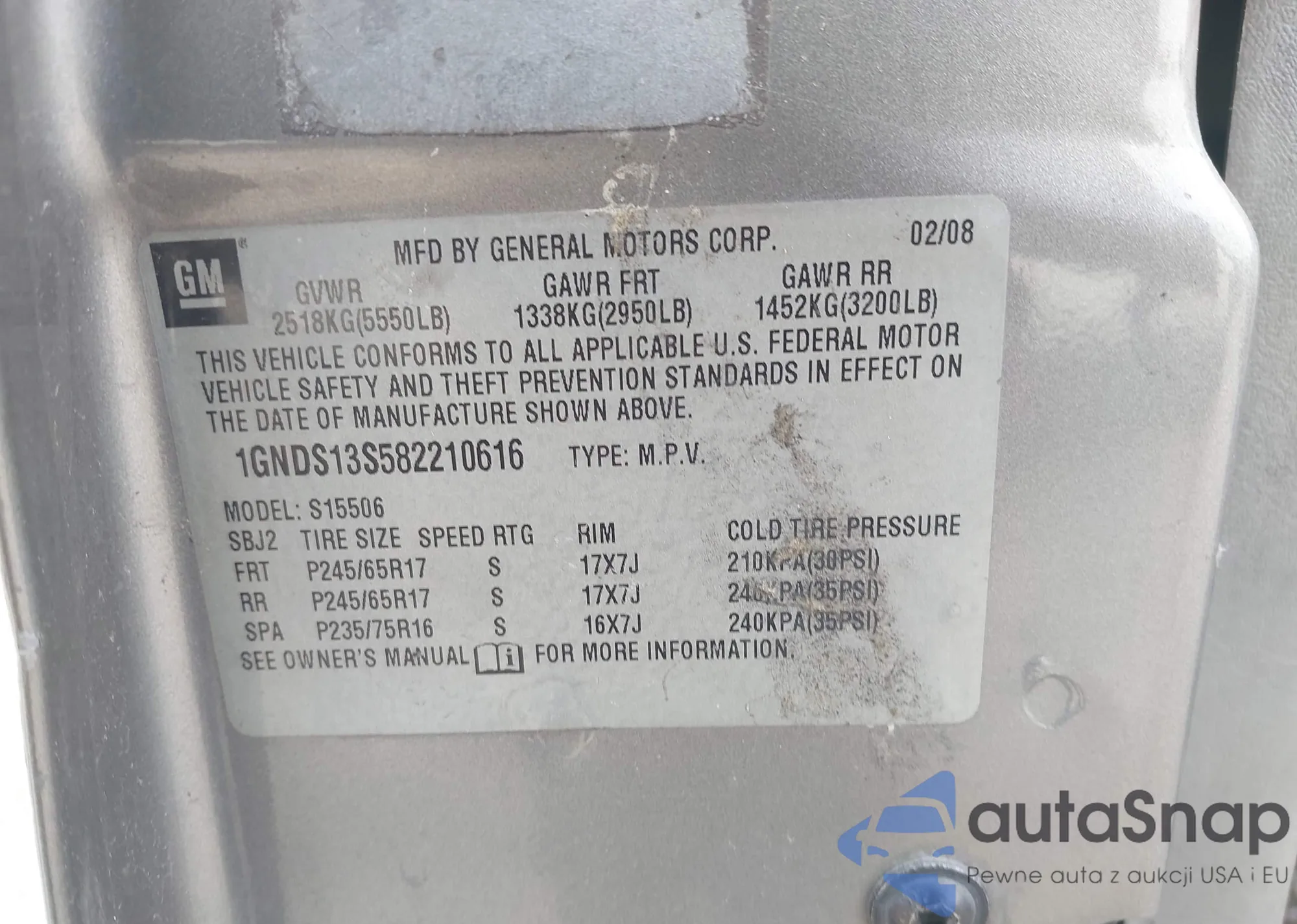 LOT: 44281602 VIN: 1GNDS13S582210616