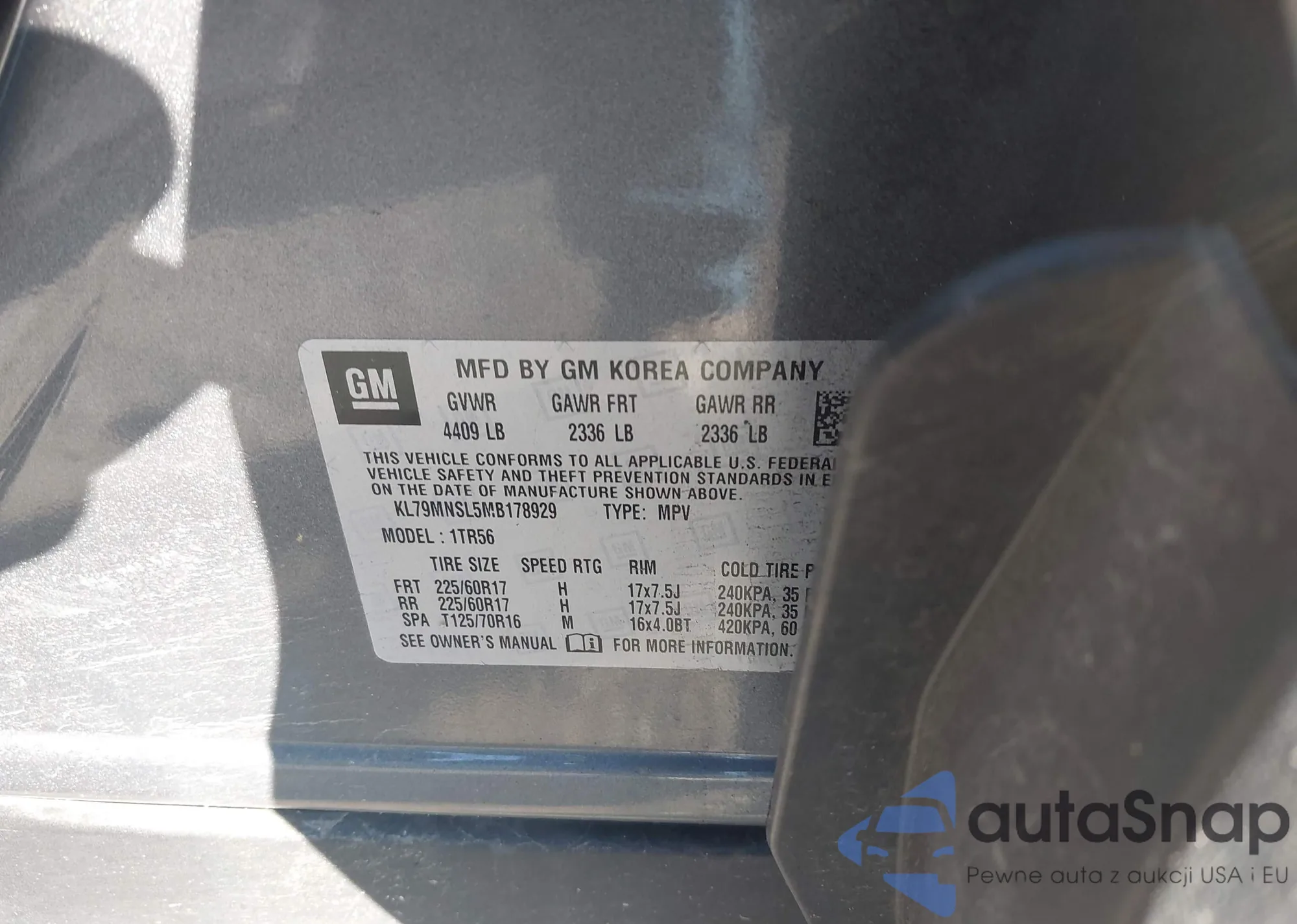 • VIN KL79MNSL5MB178929