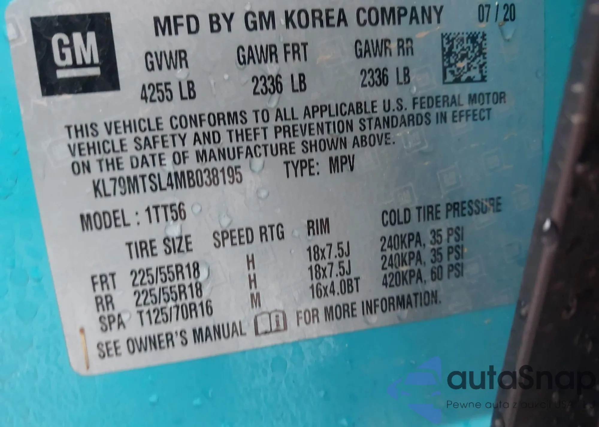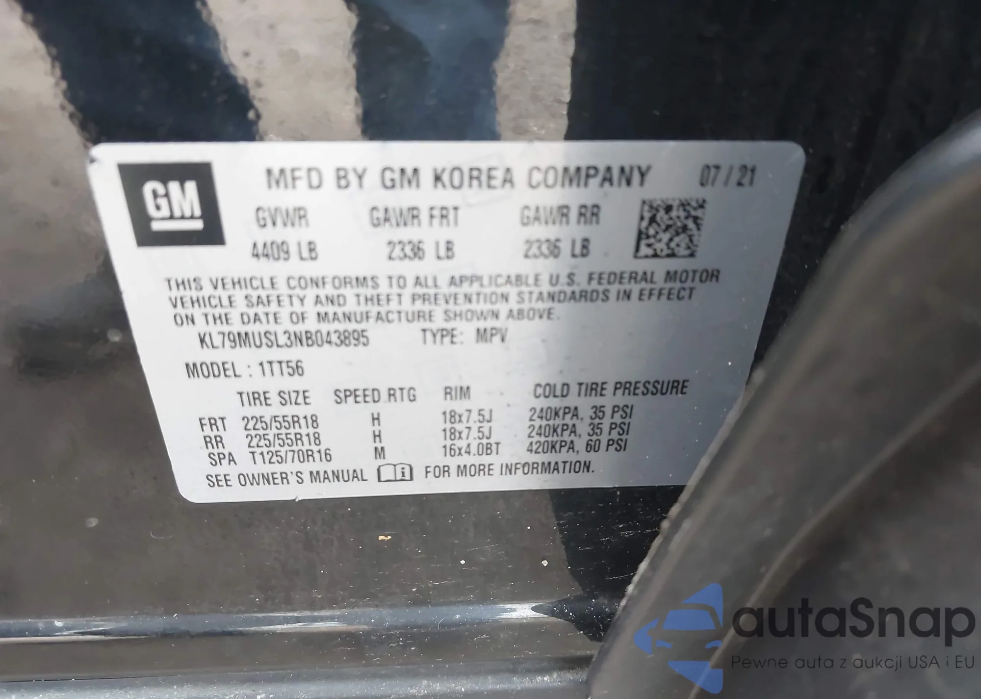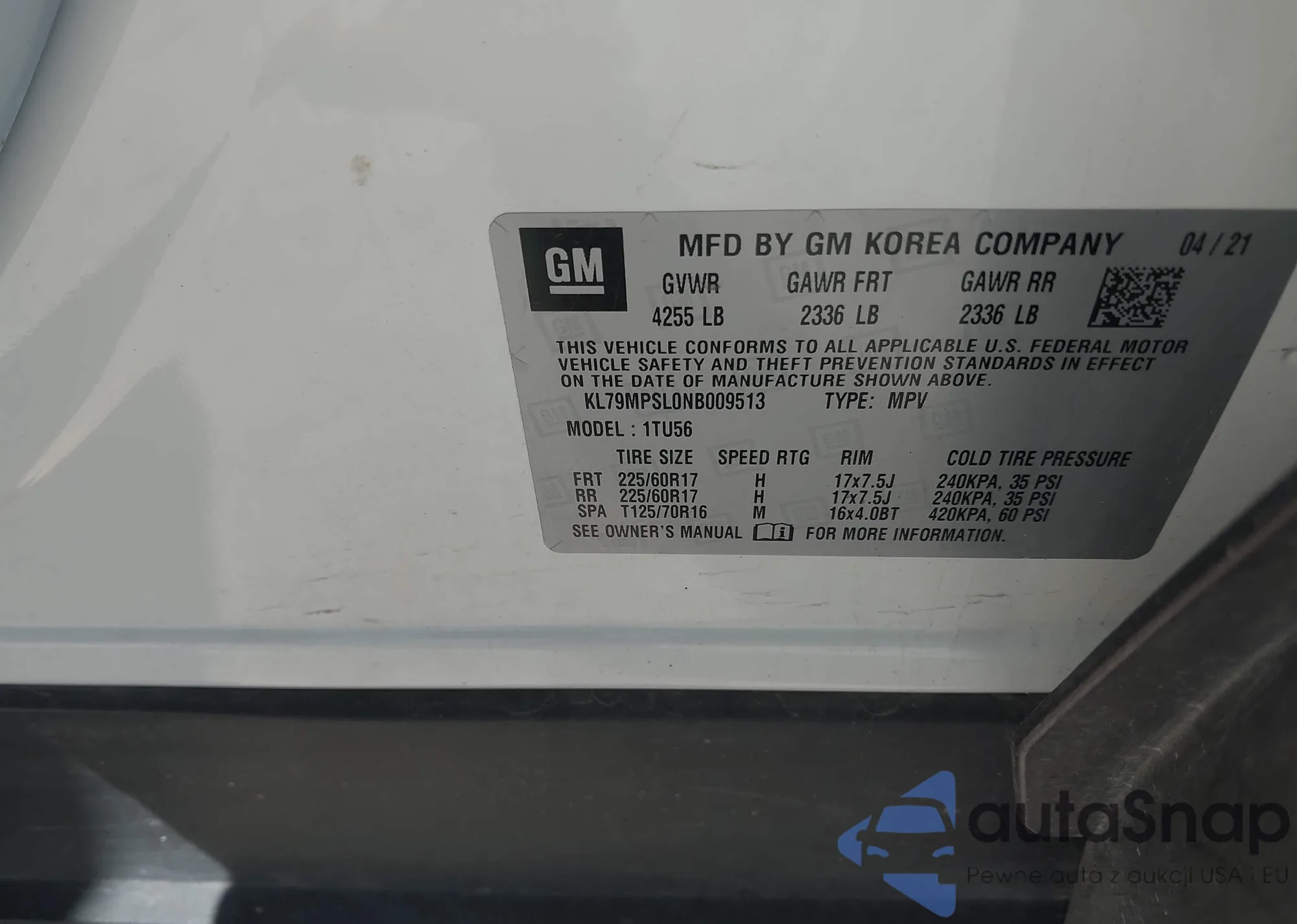 • VIN KL79MTSL4MB038195