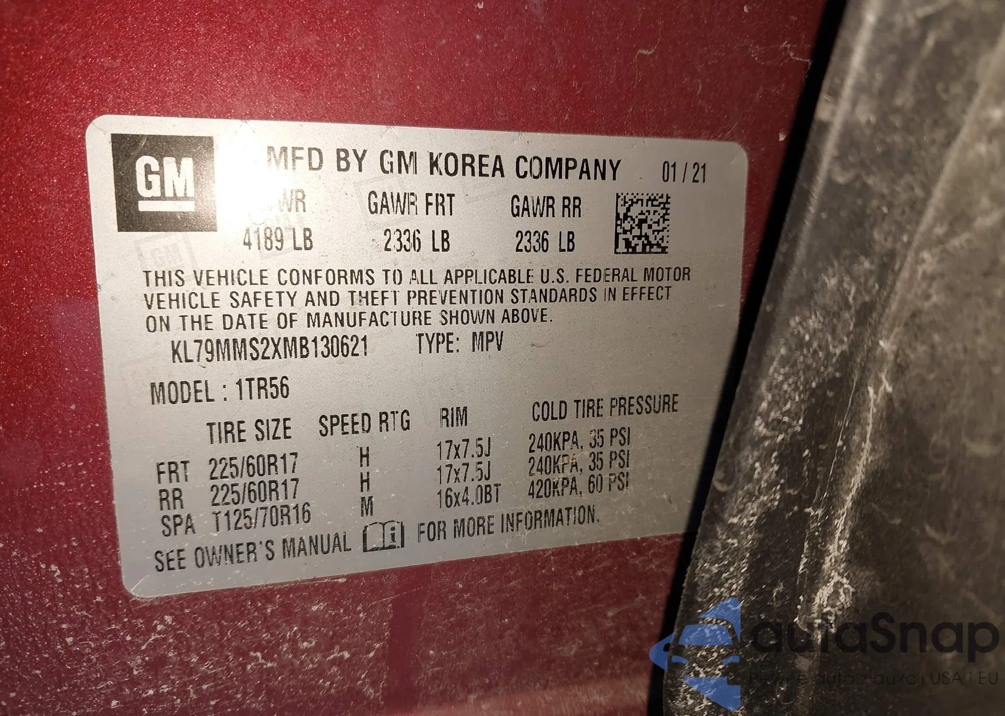 • VIN KL79MMS2XMB130621