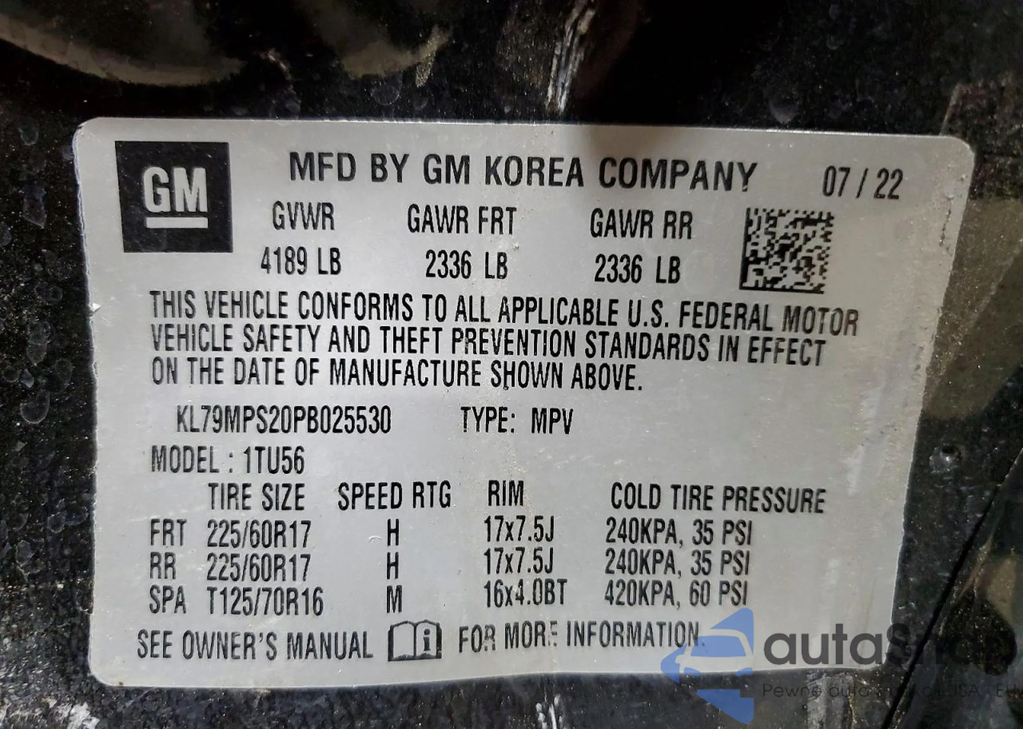 • VIN KL79MPS20PB025530